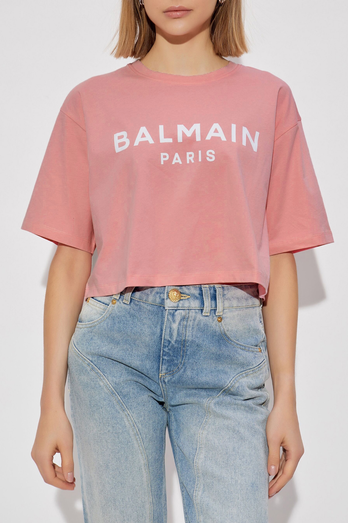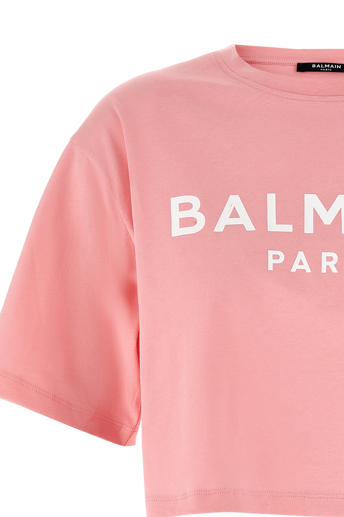 Cotton T-shirt, crop model, crew neck, short sleeves. SUSTAINABLE: This product is made of organic cotton.