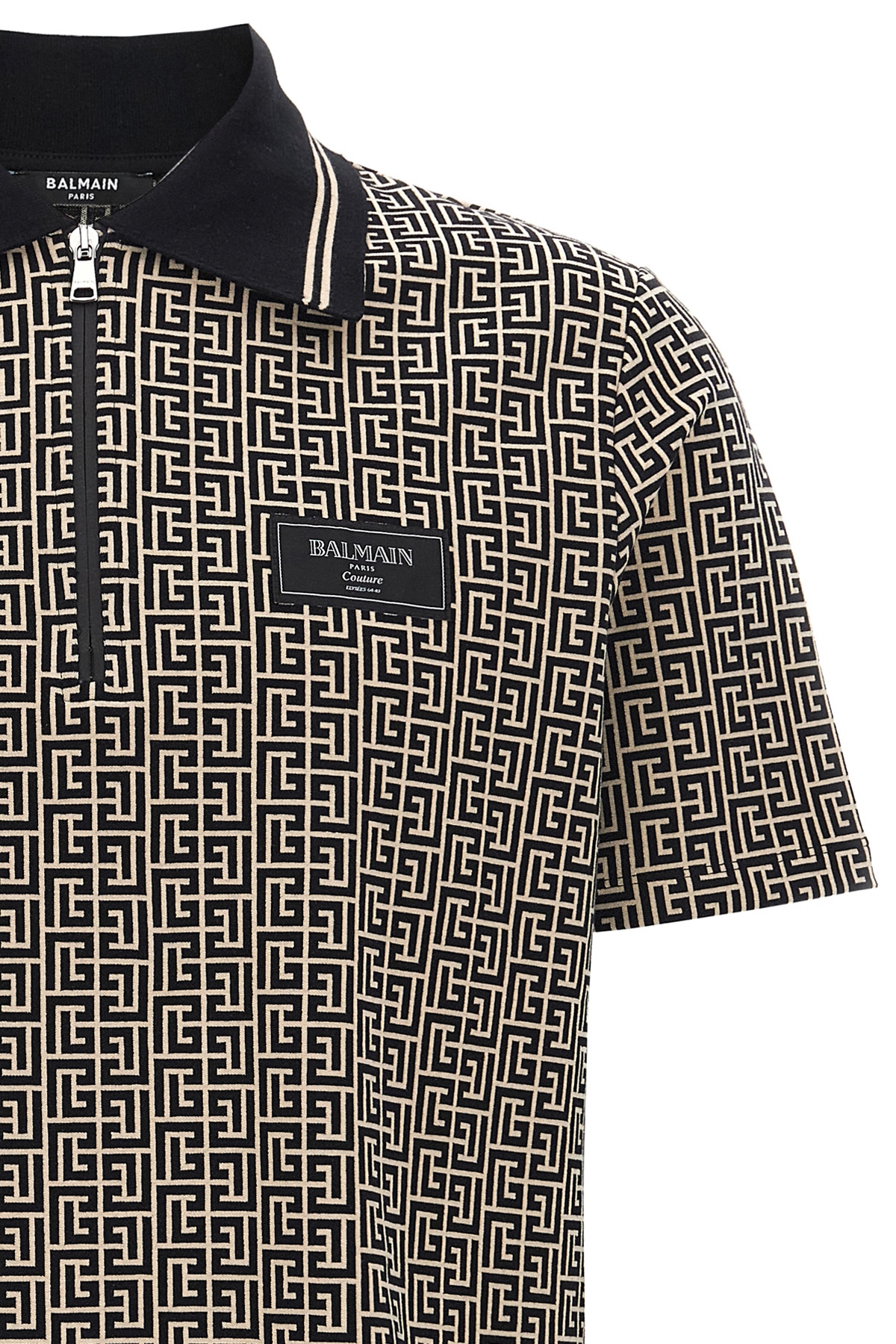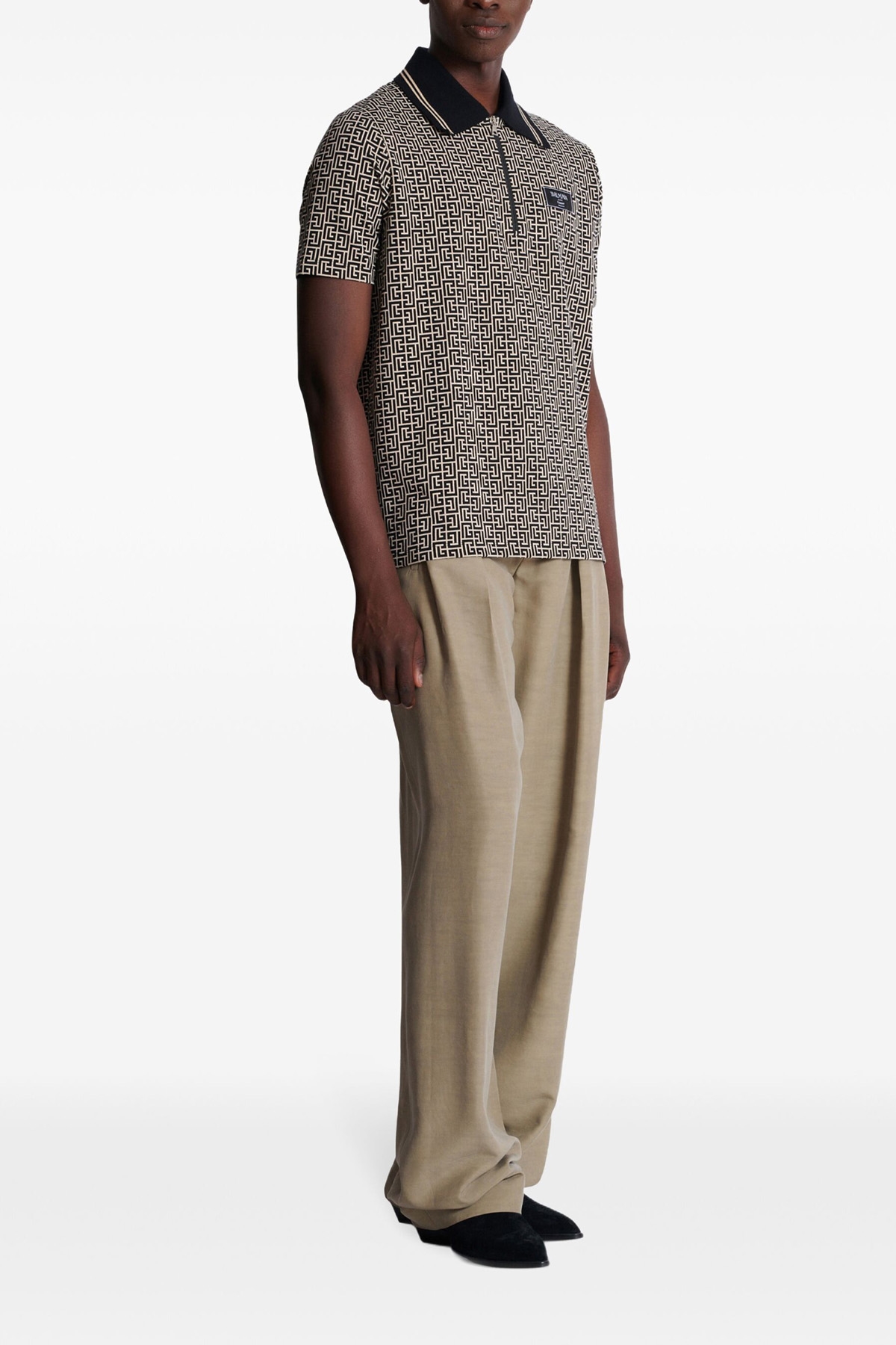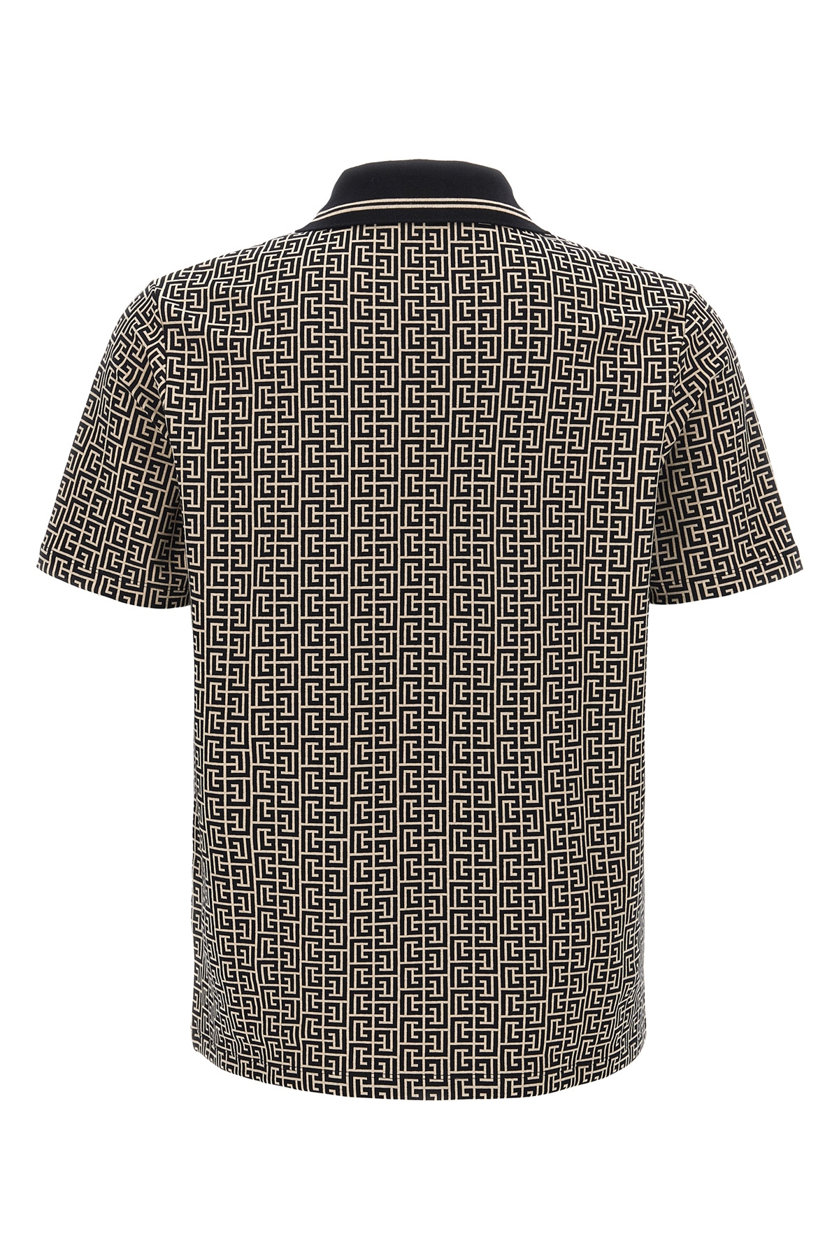 Jacquard cotton polo shirt with all-over labyrinth PB monogram pattern, contrasting collar and half zip, front logo patch, and short sleeves. SUSTAINABLE: This product is made of organic cotton.