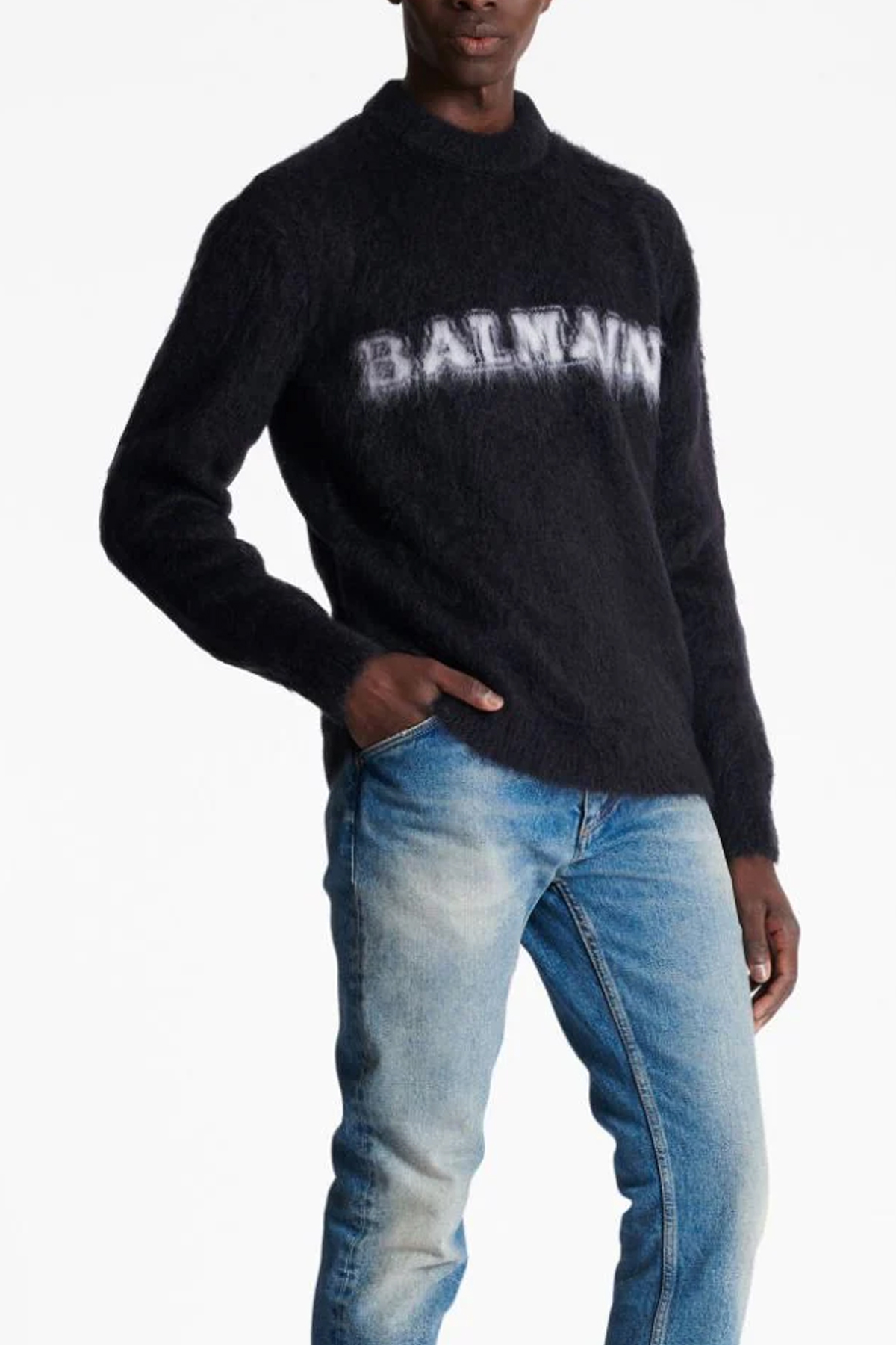 'Balmain retro' mohair blend sweater with front logo.