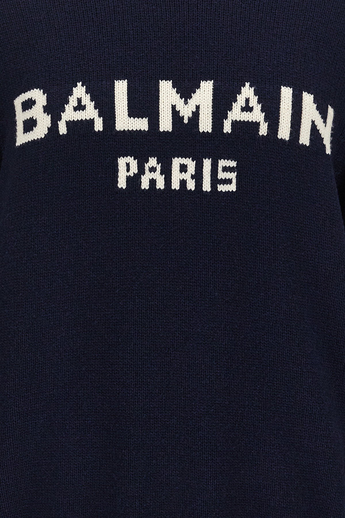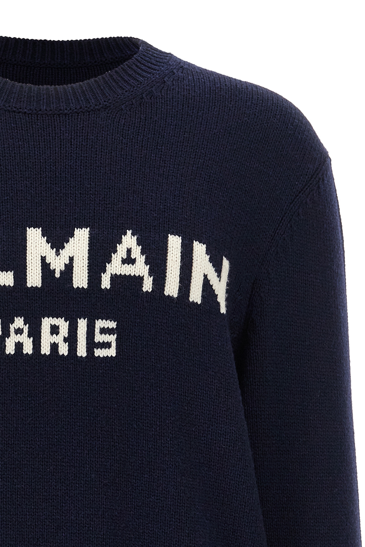 Wool blend sweater with contrasting intarsia-effect logo on the front, crew neck, long cuffed sleeves.