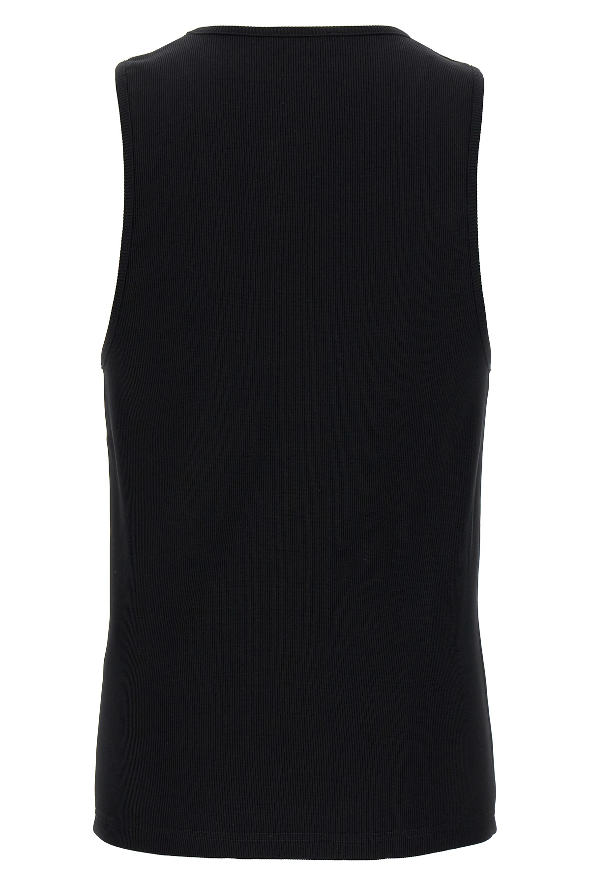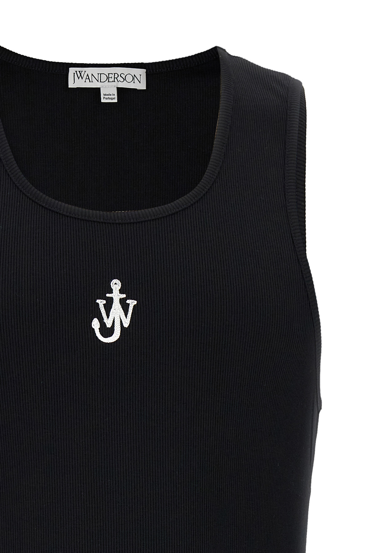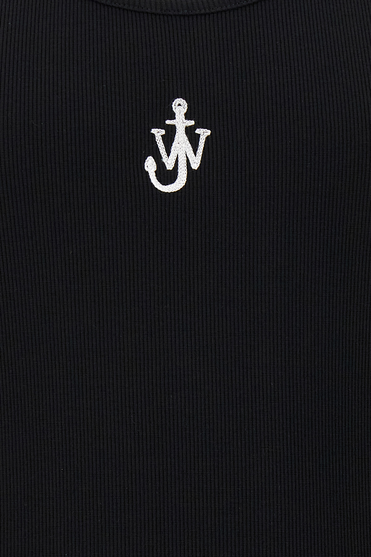 'Anchor Embroidery' sleeveless ribbed cotton top with round neckline, contrast front logo embroidery detail.