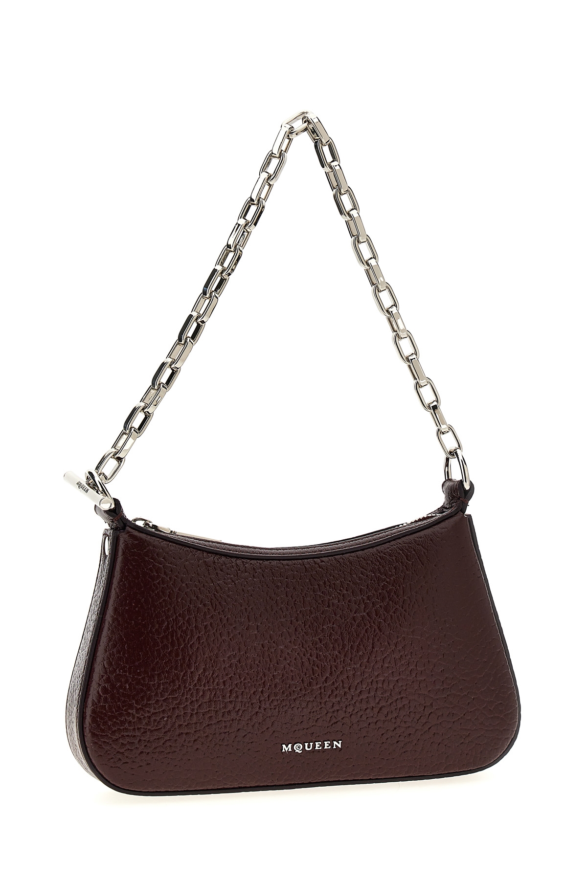'McQueen T-bar Mini' handbag in grainy leather, foldable chain handle with T-hook, zip closure, front metal logo.