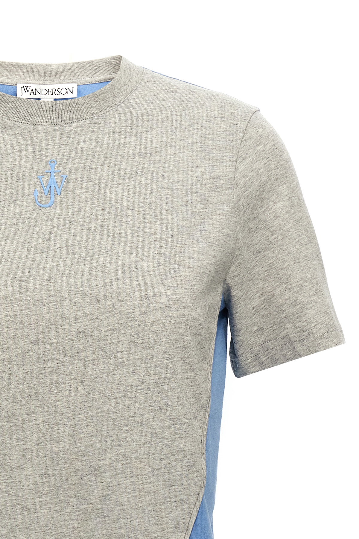 'Anchor embroidery pannelled cropped' cotton, crewneck t-shirt with front stitching, front logo embroidery detail, short sleeves.