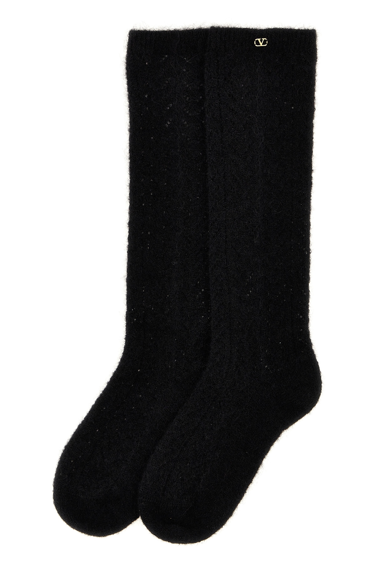 Mohair socks with perforated V pattern, applied metal VLogo. ITEM CANNOT BE RETURNED