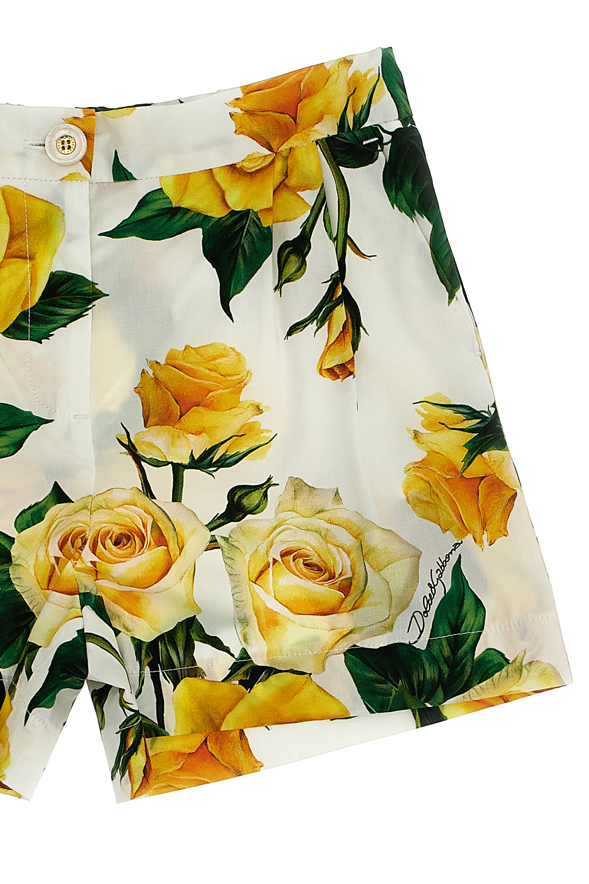 KIDS Cotton shorts with all-over 'Rose Gialle' print, zip and button closure, pockets.