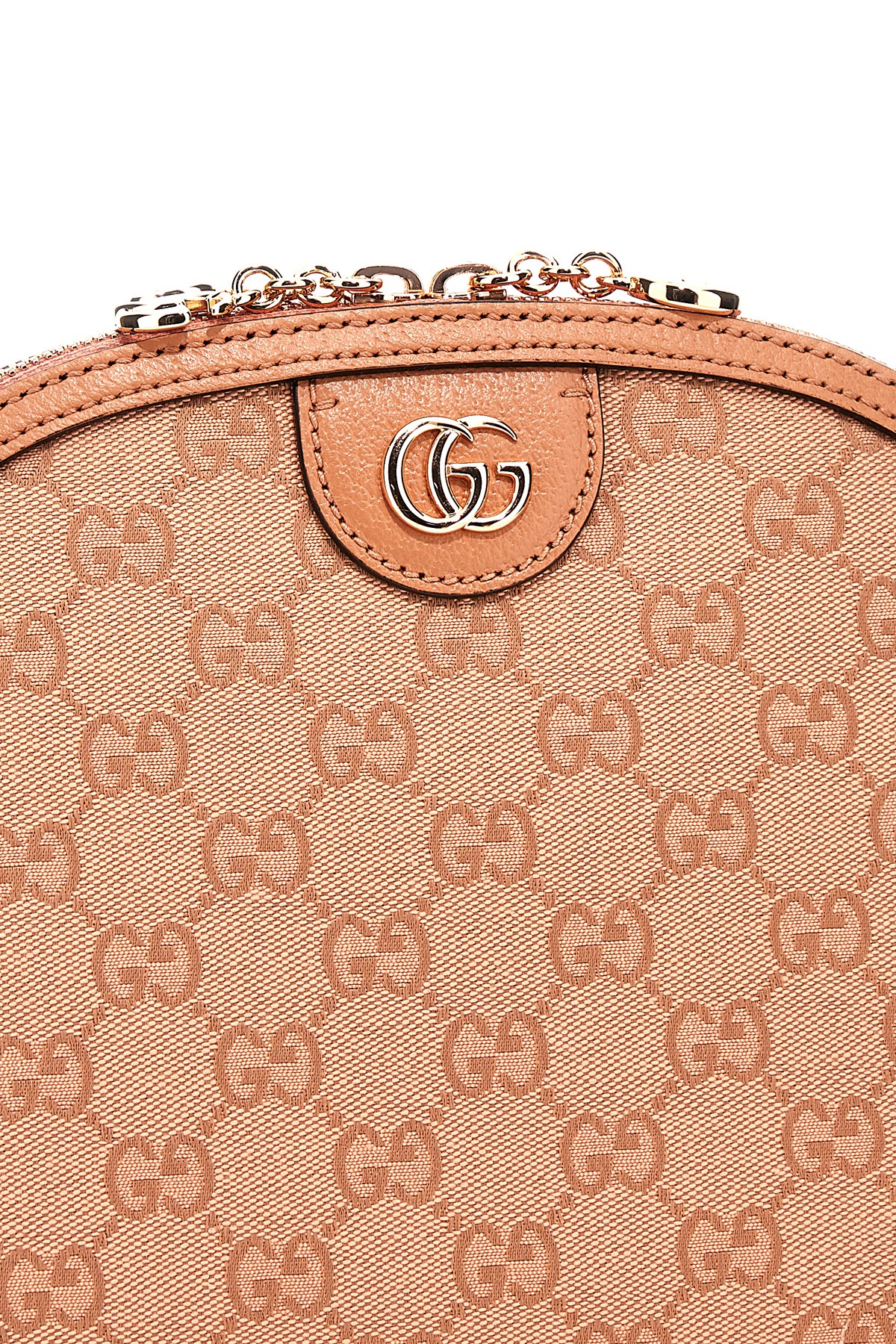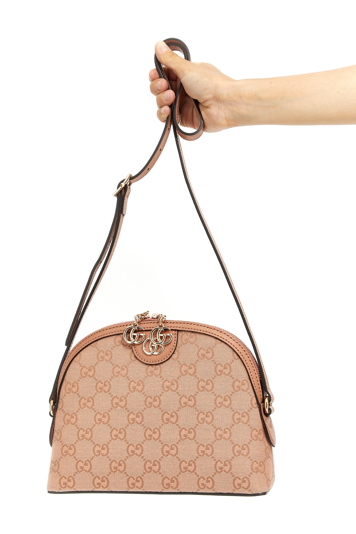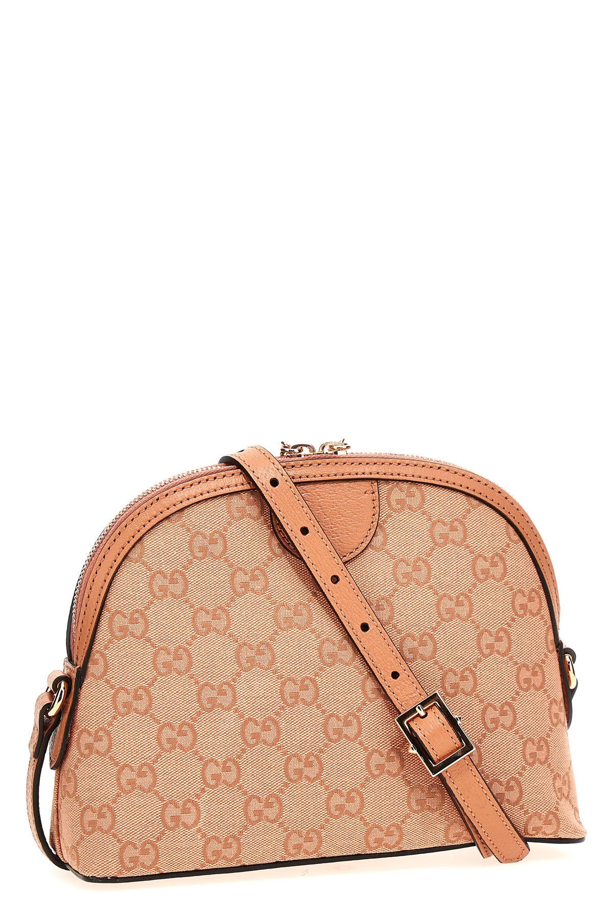 Ophidia GG small shoulder bag in GG fabric, leather details, zip closure with logo charm, and adjustable shoulder strap.