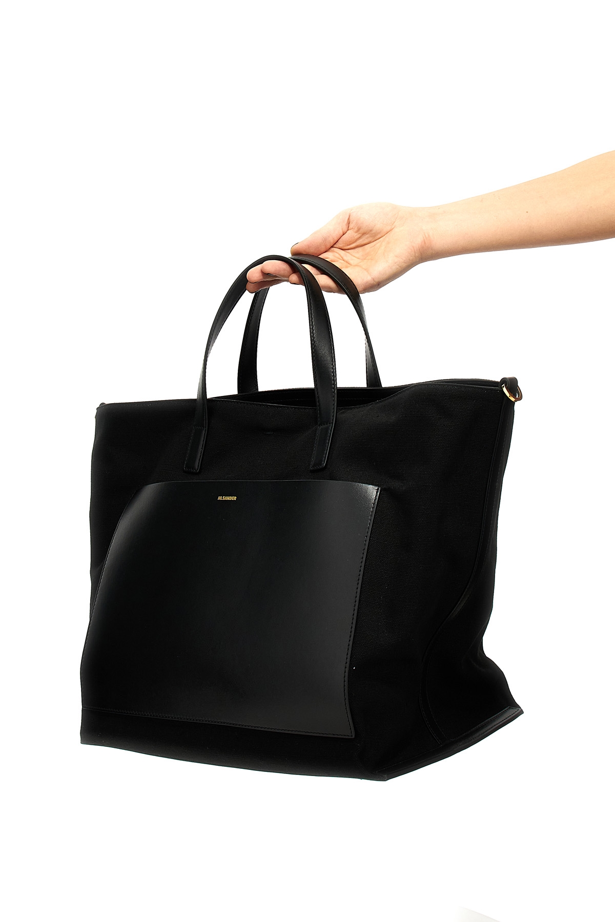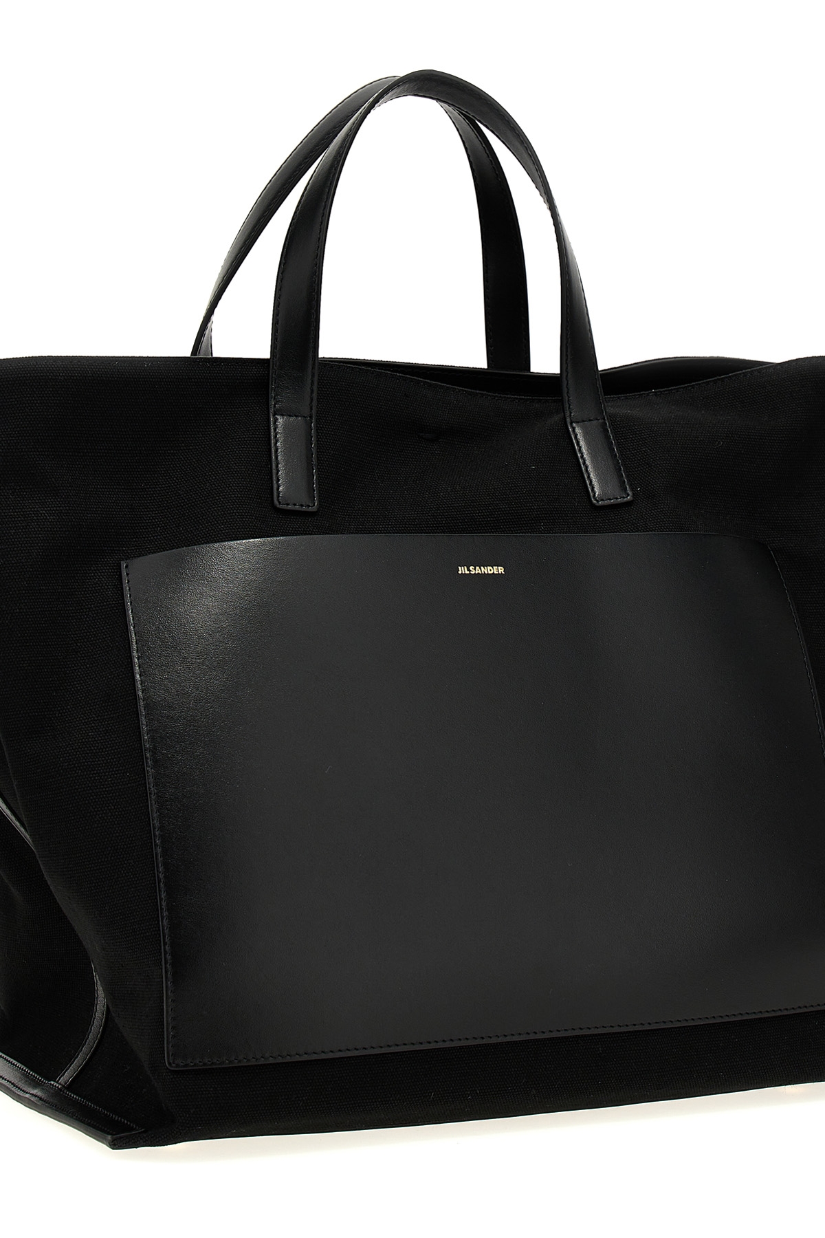 Borsa a mano 'Wander' in canvas con dettagli in pelle, doppio manico, tasca esterna con stampa logo, chiusura con zip e gancio.