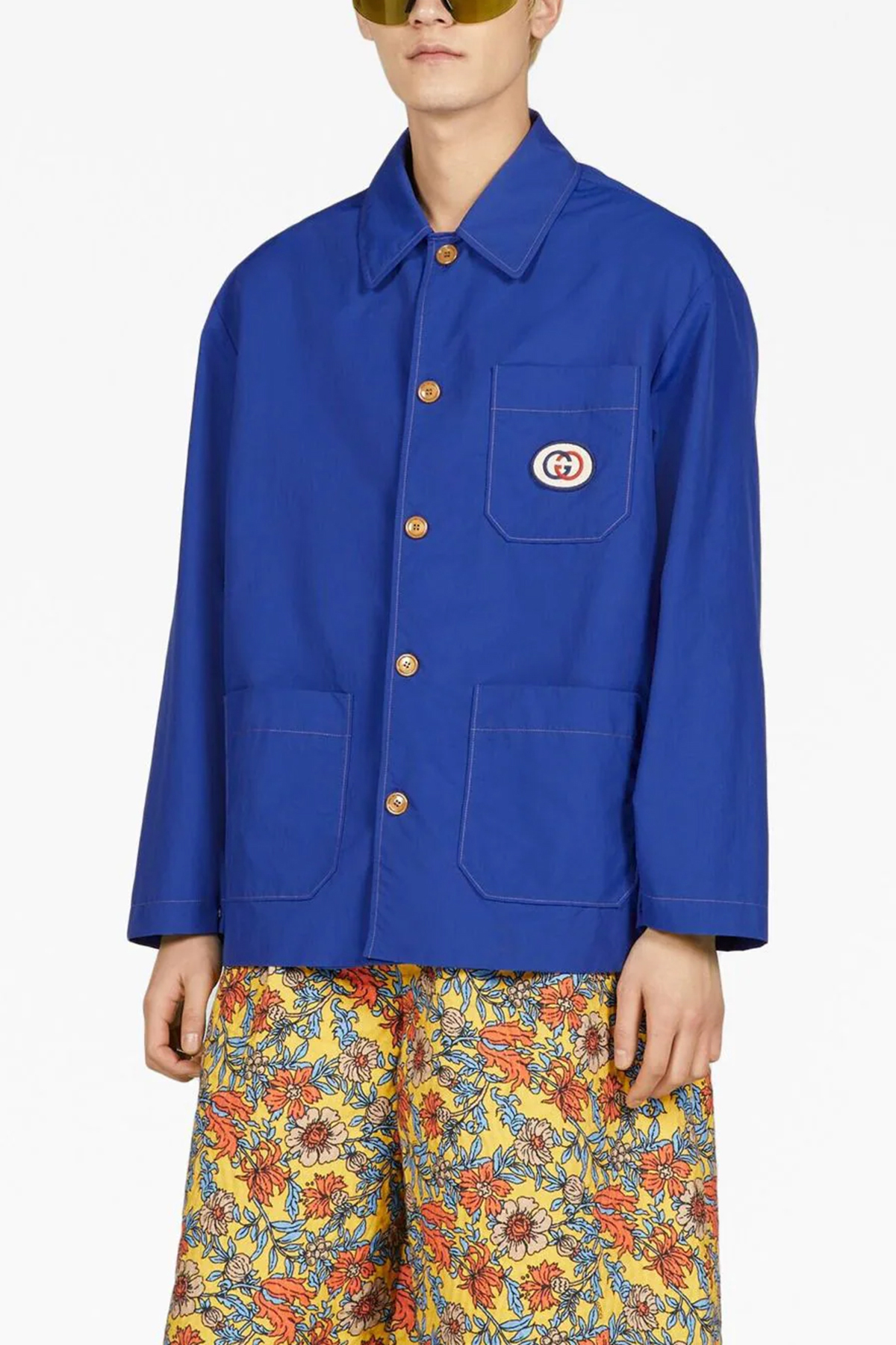 Gremlins' nylon jacket with embroidery at the back, a front logo patch, pockets, a button closure, a shirt collar and long sleeves.