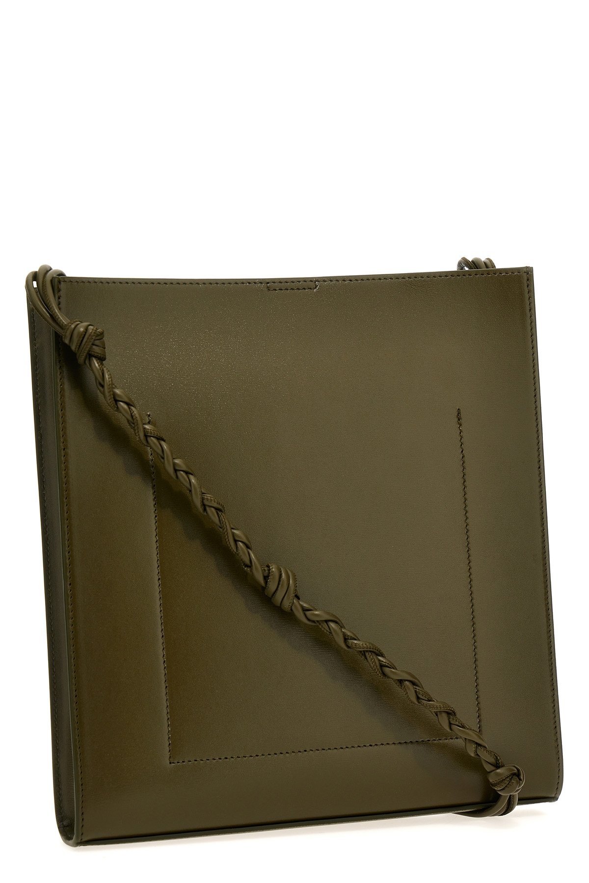 Tangle' leather crossbody bag with braided shoulder strap, magnetic closure and a front logo print.