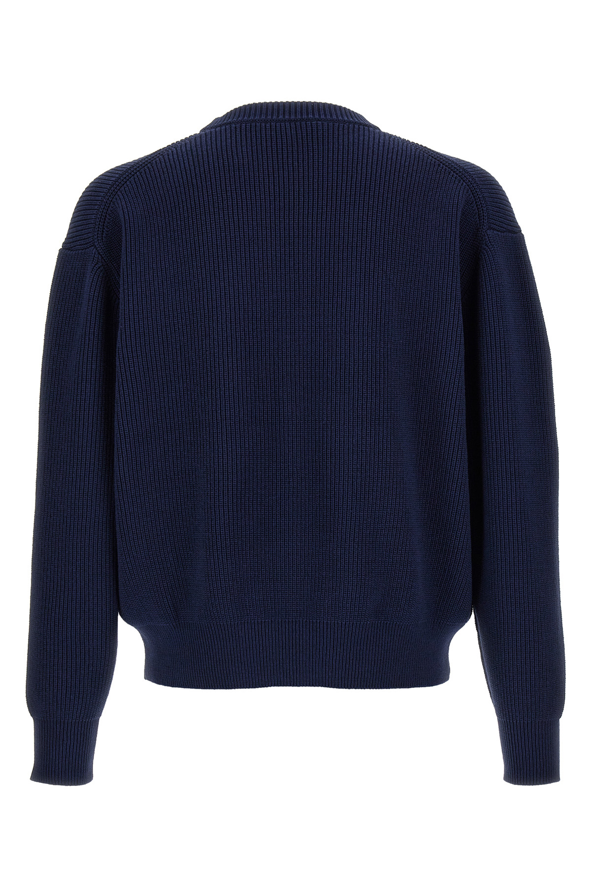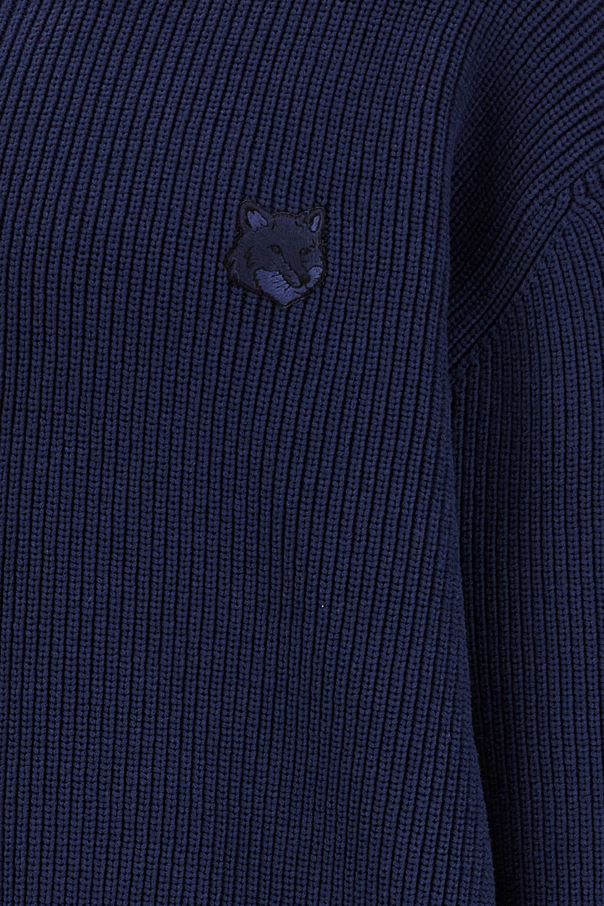 'Bold Fox Head' cotton blend knit sweater with front patch, crew neck, long cuffed sleeves.