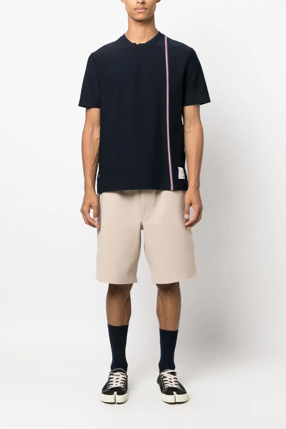 'Rwb stripe' cotton crew neck t-shirt with contrast RWB detail, asymmetrical hem.