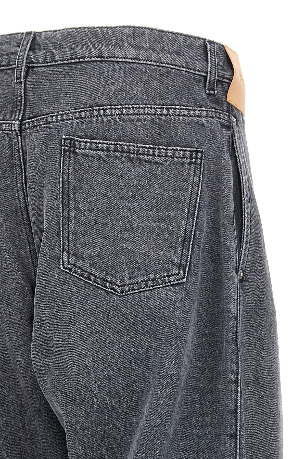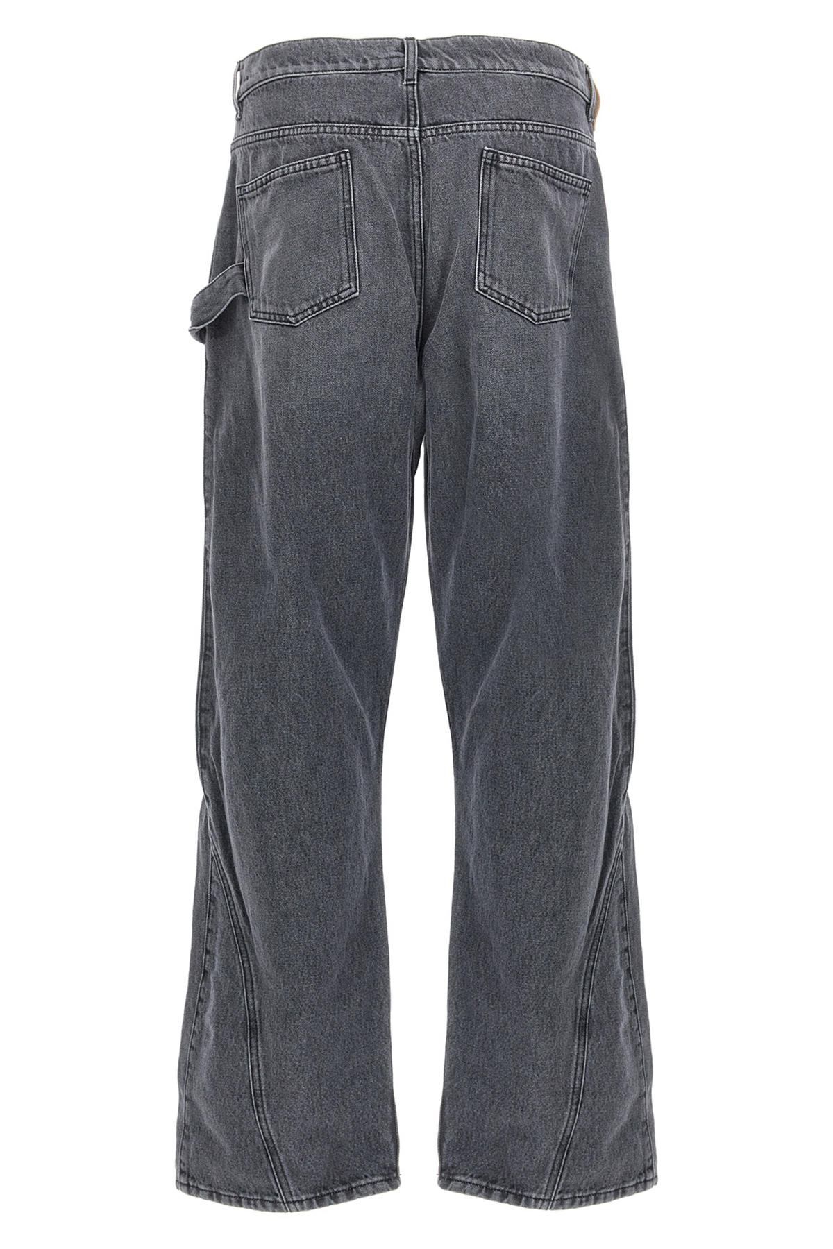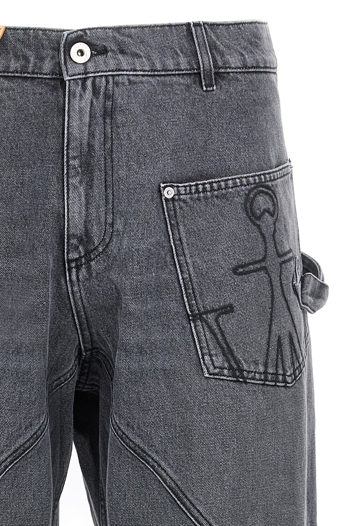 'Twisted Workwear' cotton denim jeans with twisted silhouette low waist and wide leg, front pocket with contrast 'Anchor' logo embroidery, oblique zip and button closure, front leather logo tag, pockets.