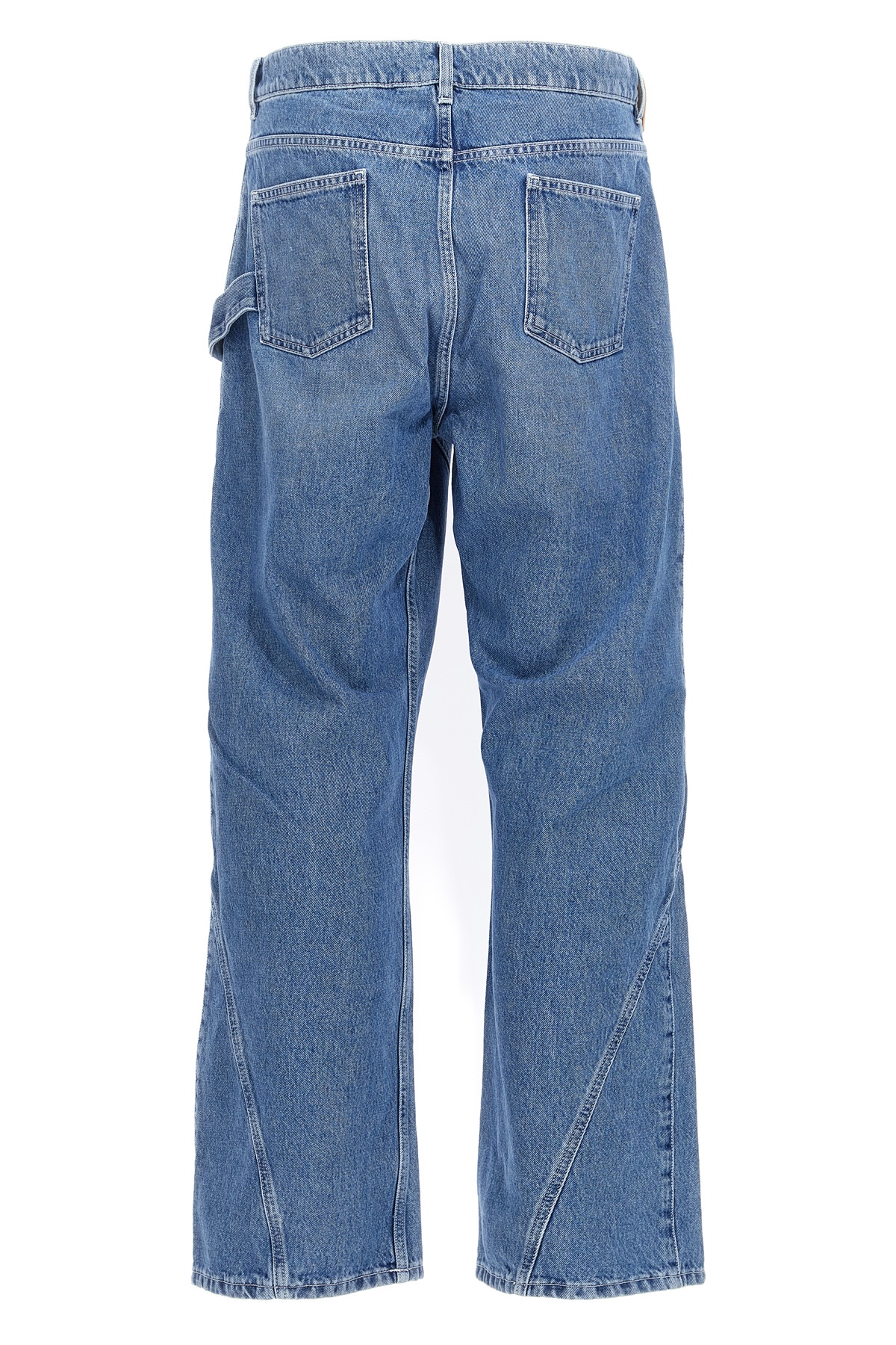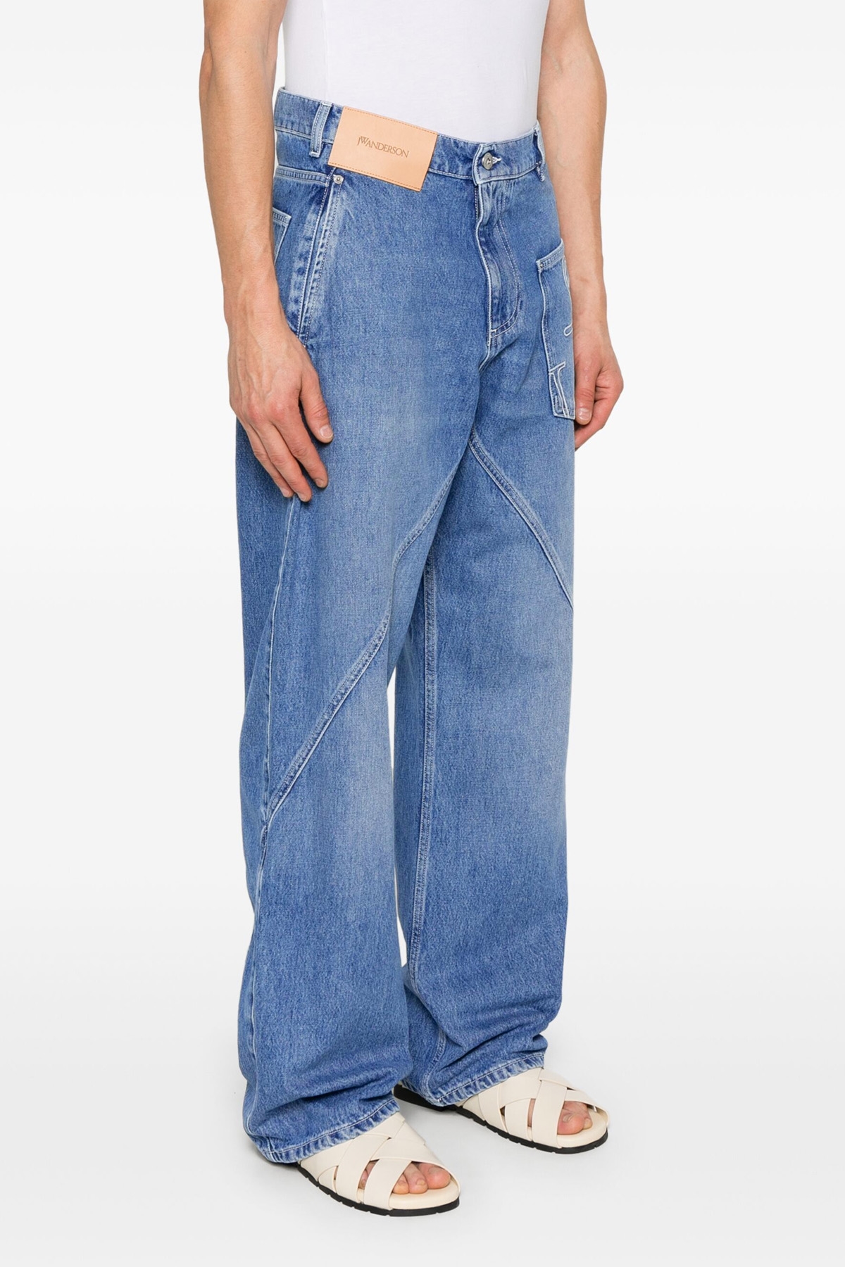 'Twisted Workwear' cotton denim jeans with twisted silhouette low waist and wide leg, front pocket with contrast 'Anchor' logo embroidery, oblique zip and button closure, front leather logo tag, pockets.