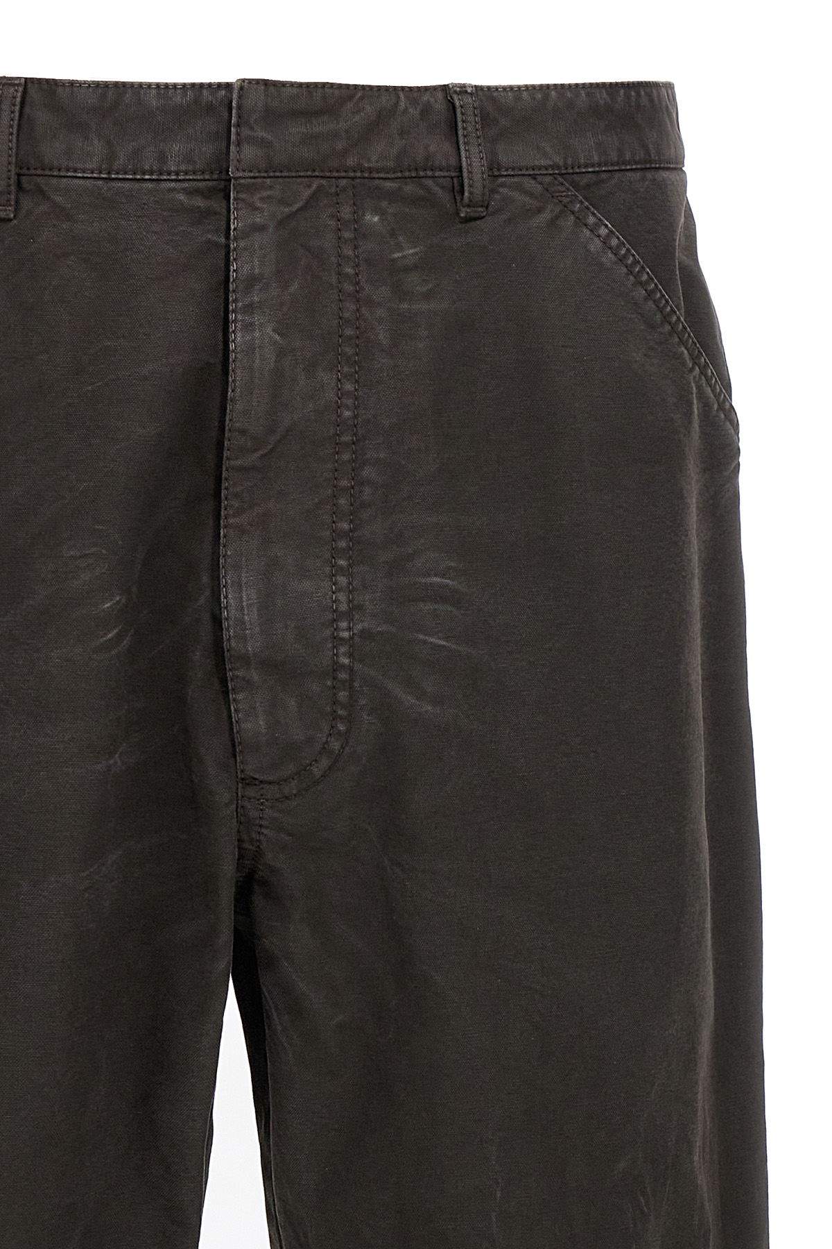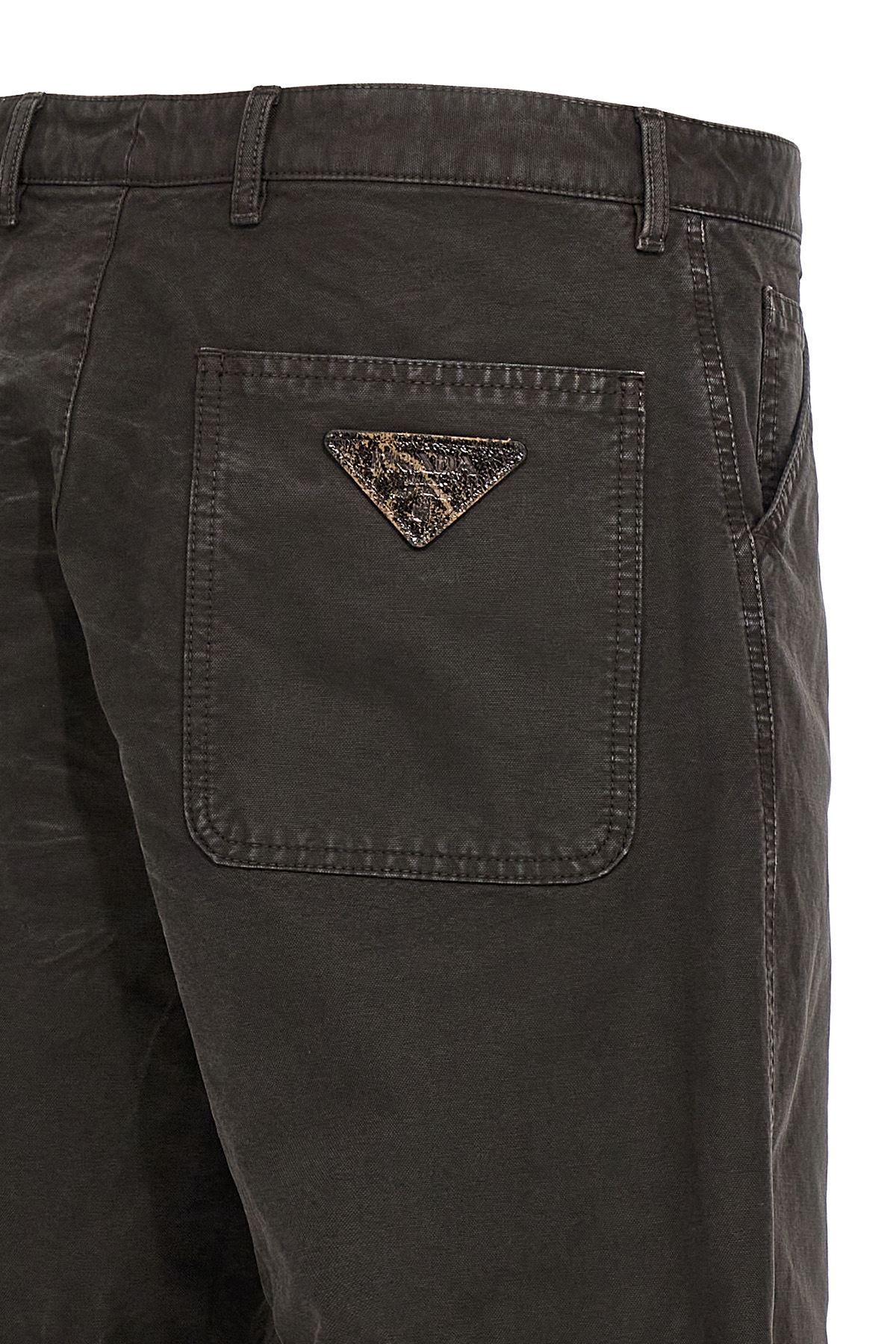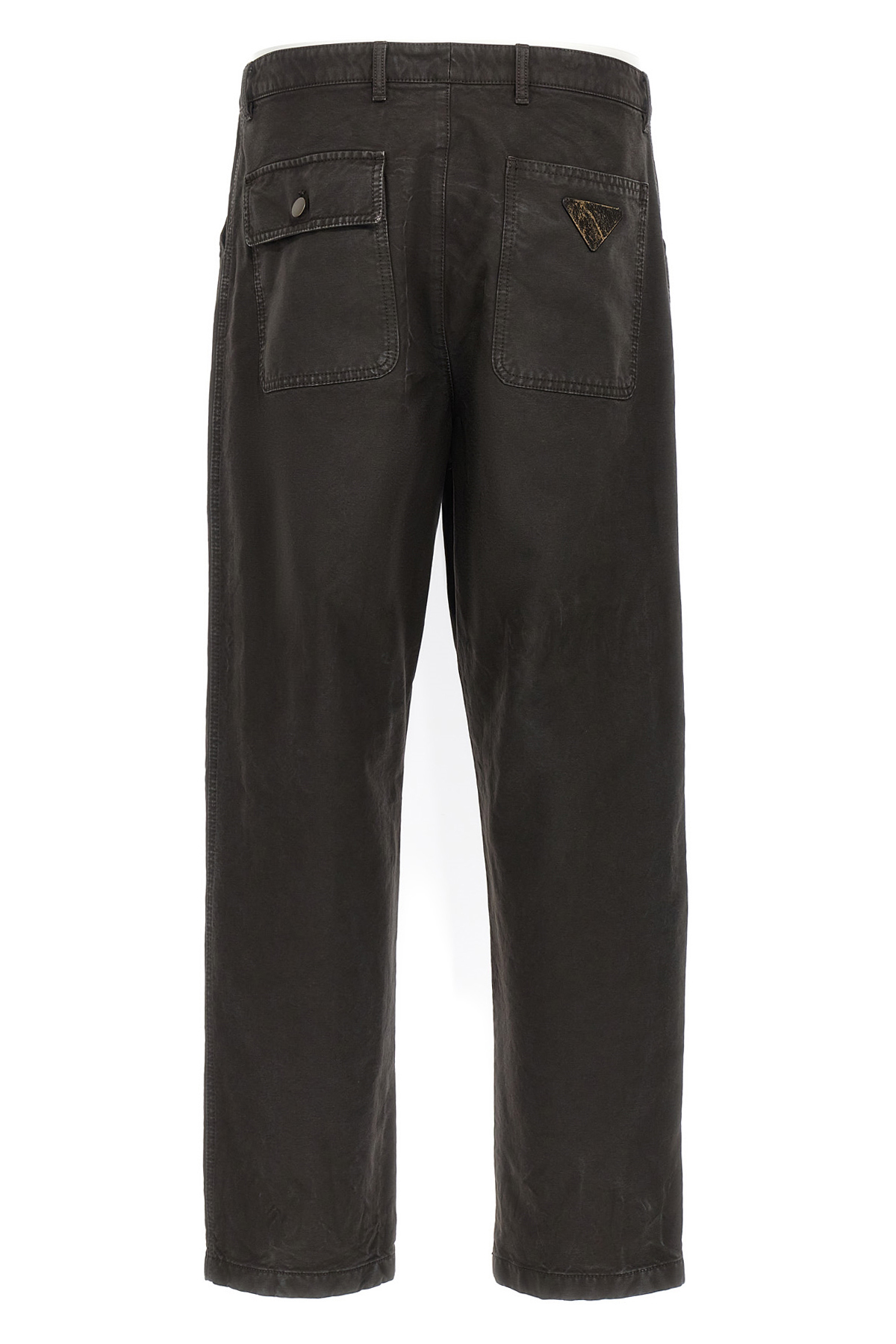 'Canvas Old' used-effect cotton chinos with straight leg, triangle leather logo on the back, zip and button closure, pockets.