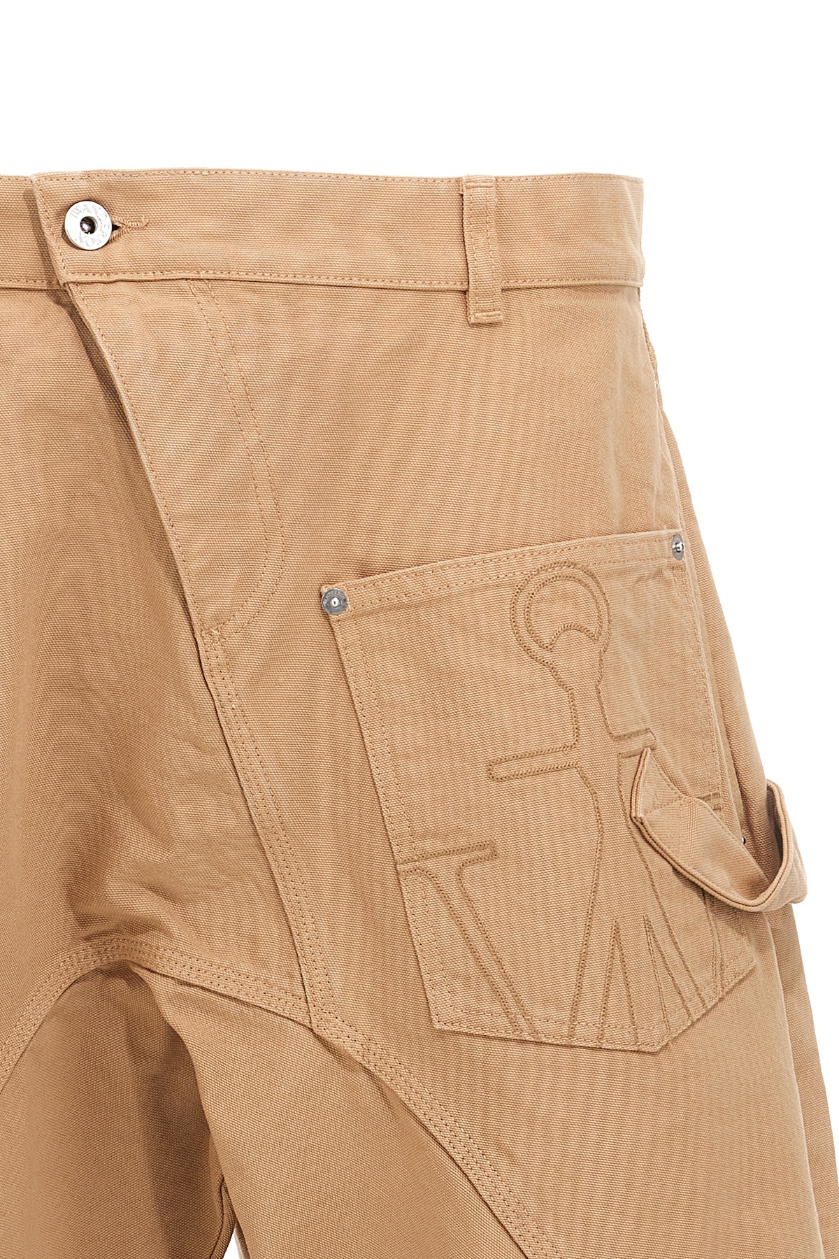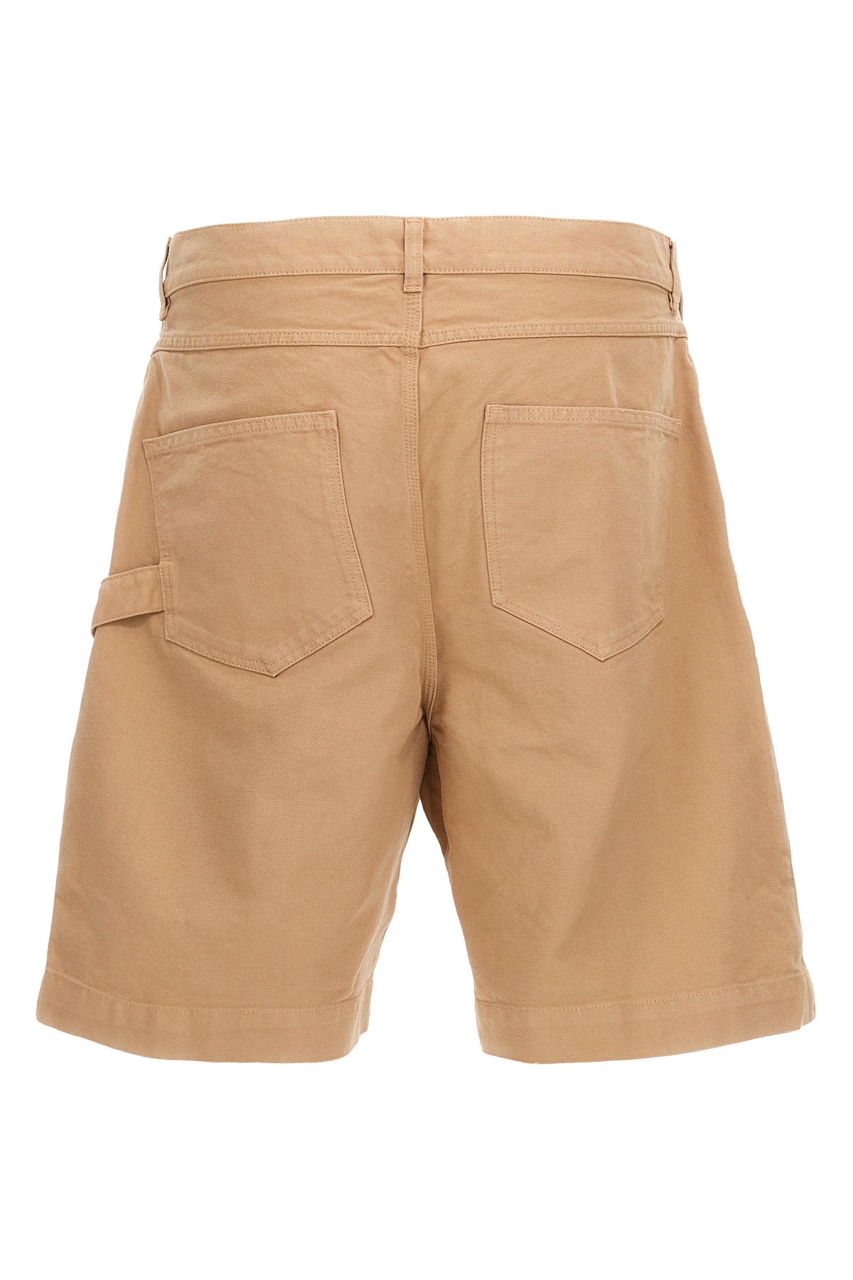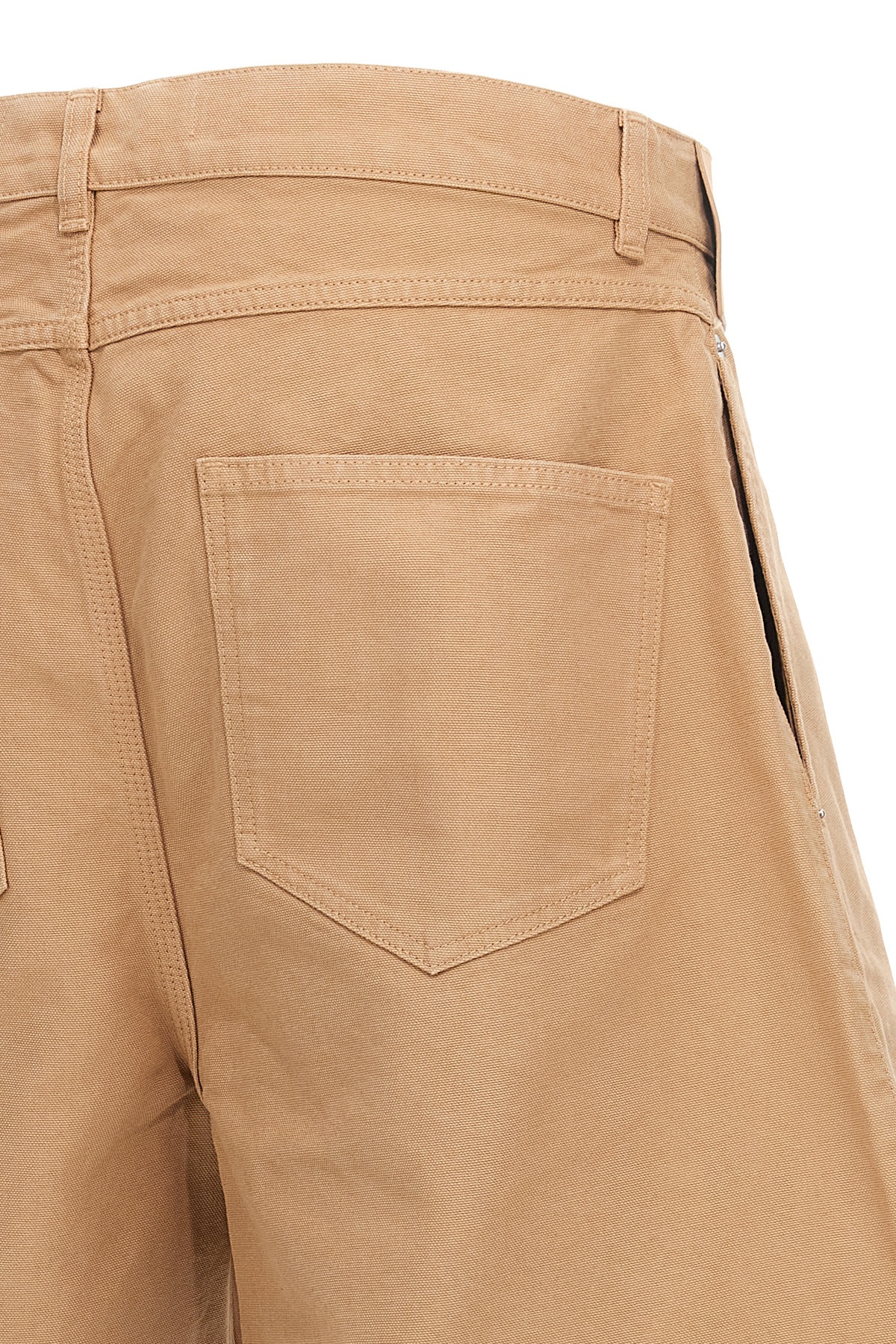 'Twisted Workwear' canvas bermuda shorts with twisted silhouette low waist and wide leg, front pocket with contrast 'Anchor' logo embroidery, oblique zip and button closure, front leather logo tag, pockets.