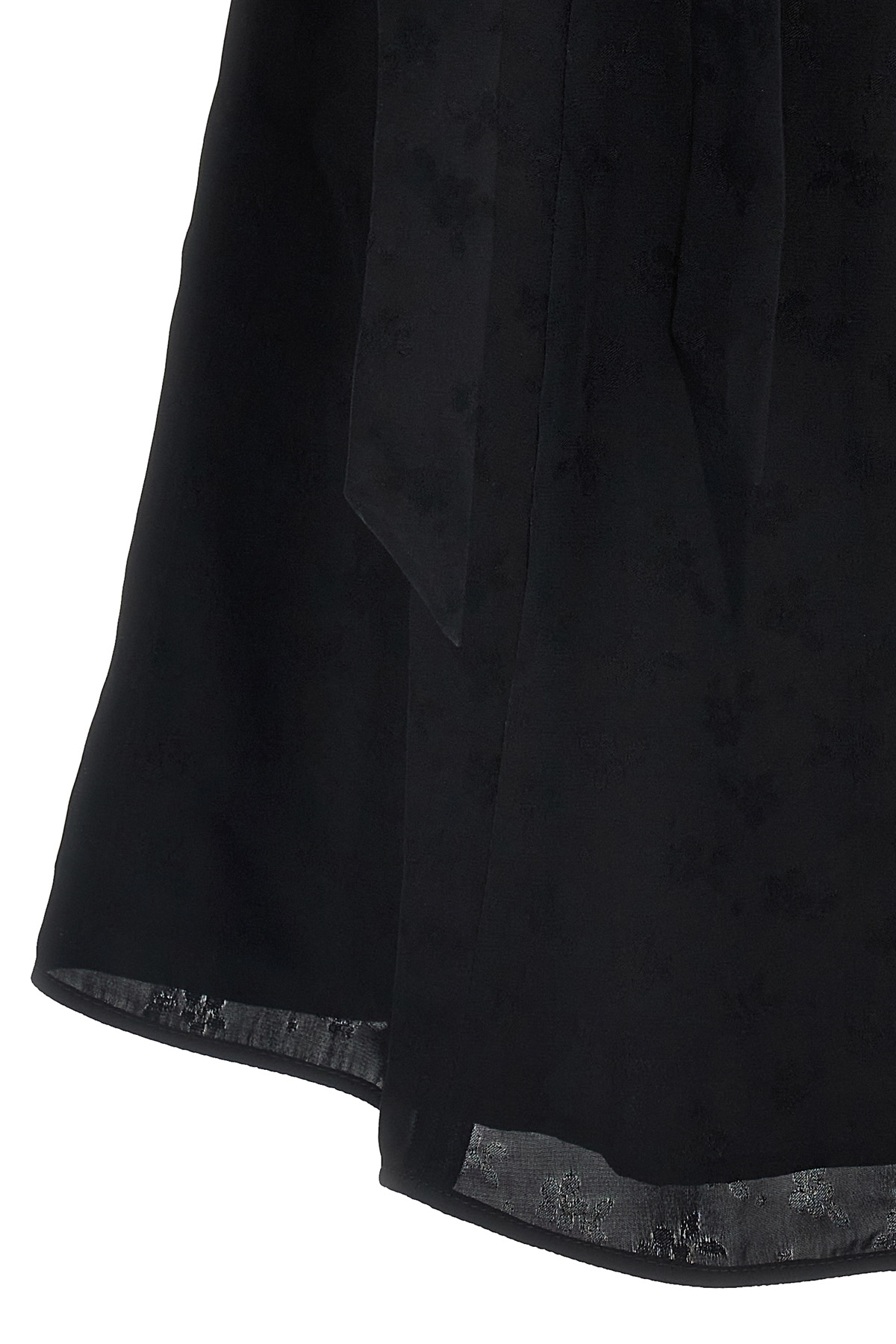 Viscose dress with tonal floral print, crew neck, balloon sleeves with adjustable tape, petticoat, back zip closure.