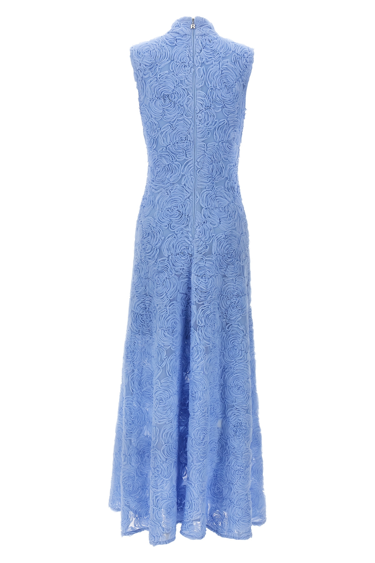 'Flower mesh maxi' sleeveless dress in semi-transparent fabric with tone-on-tone floral embroidery, back zip closure.