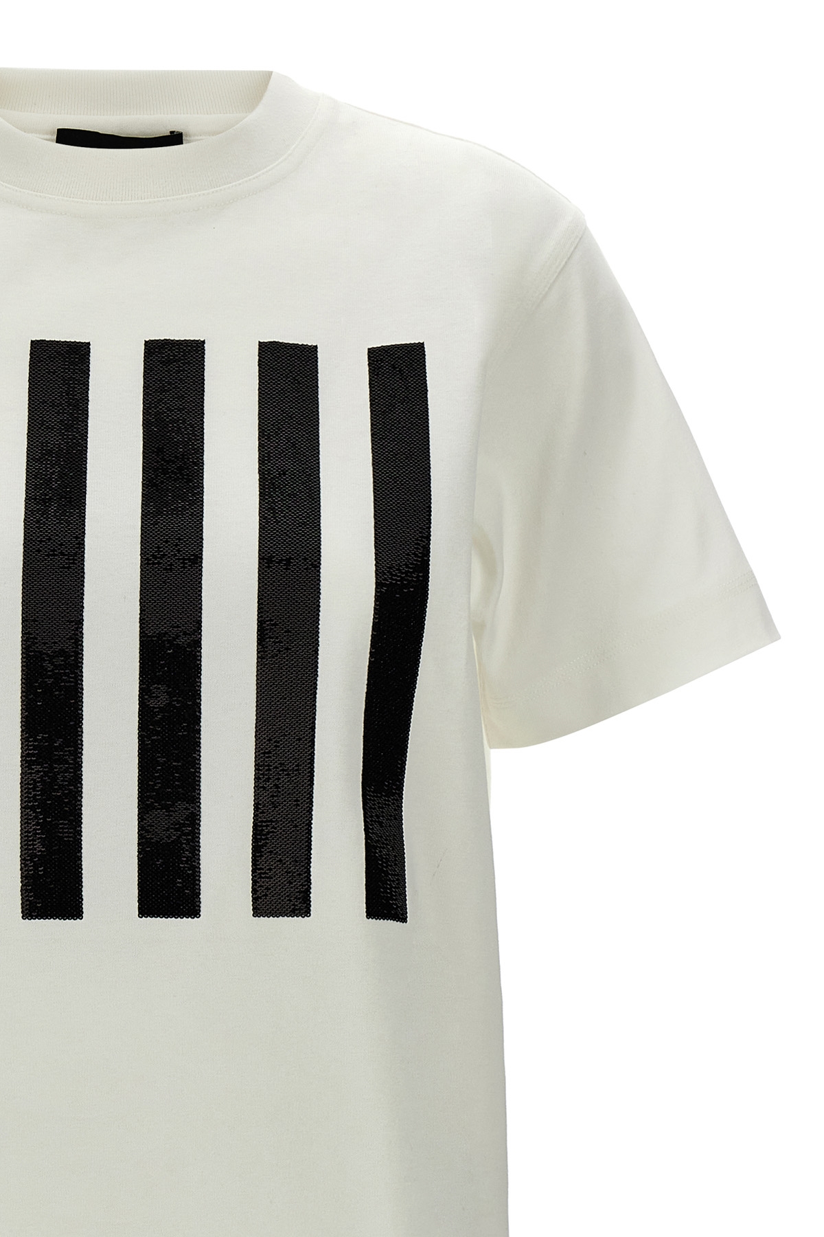 'The Stripe Box' cotton T-shirt with micro sequin applique on the front, crew neck, short sleeves, back logo patch.