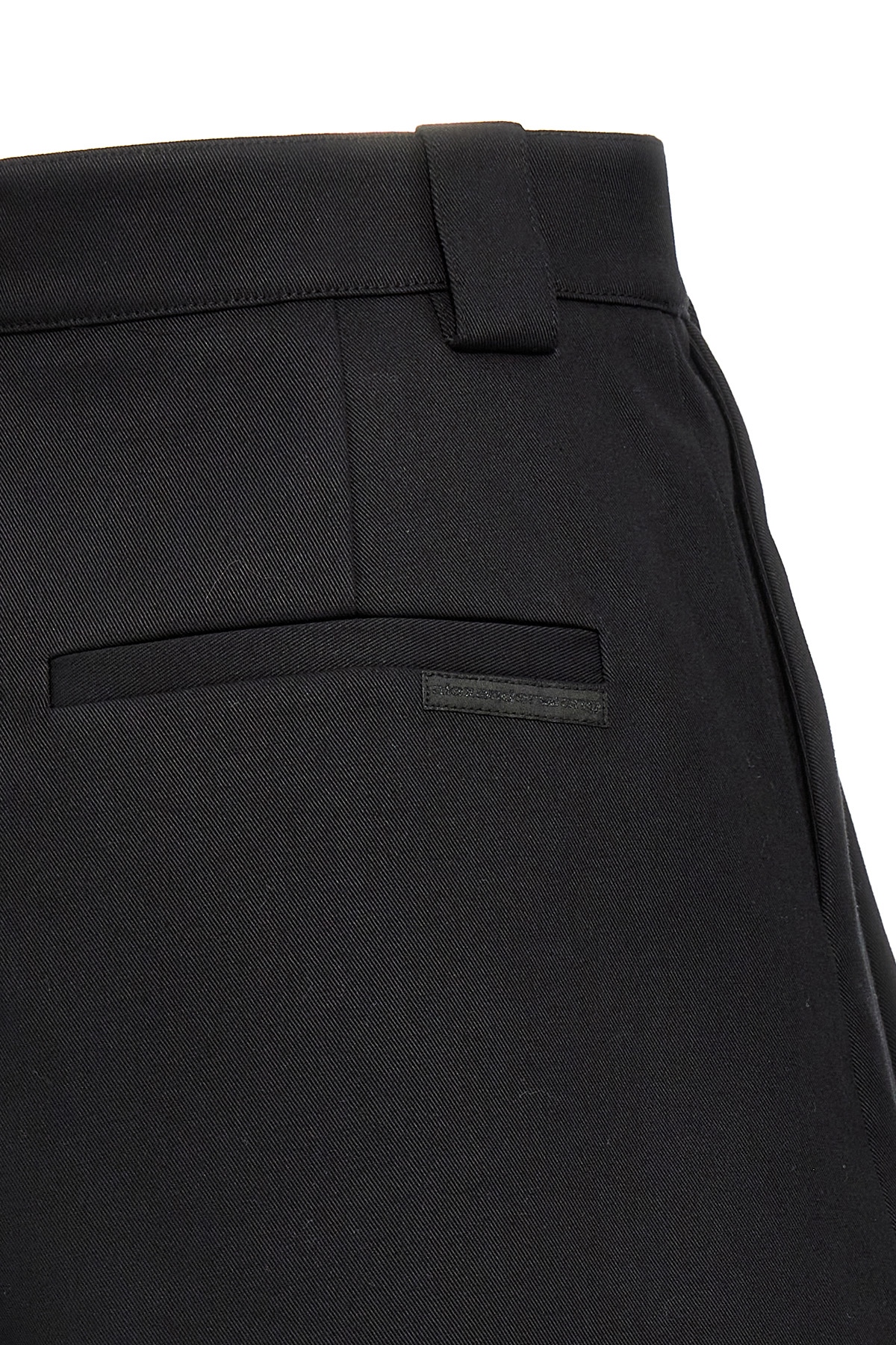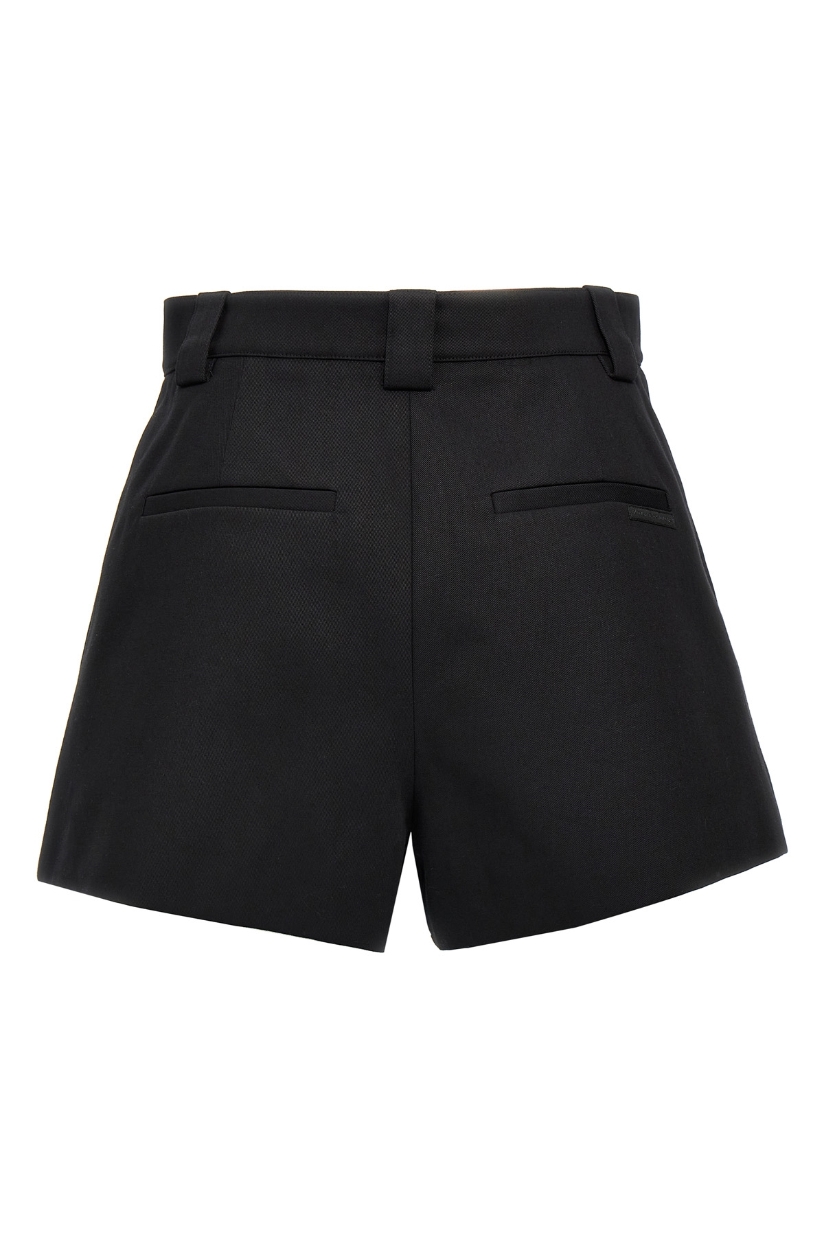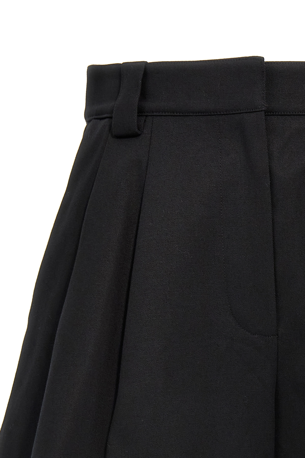 Cotton shorts, high waist and flared leg with double pince, zip hook and button closure, pockets.