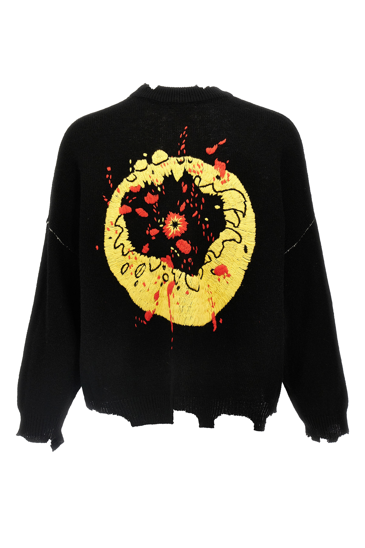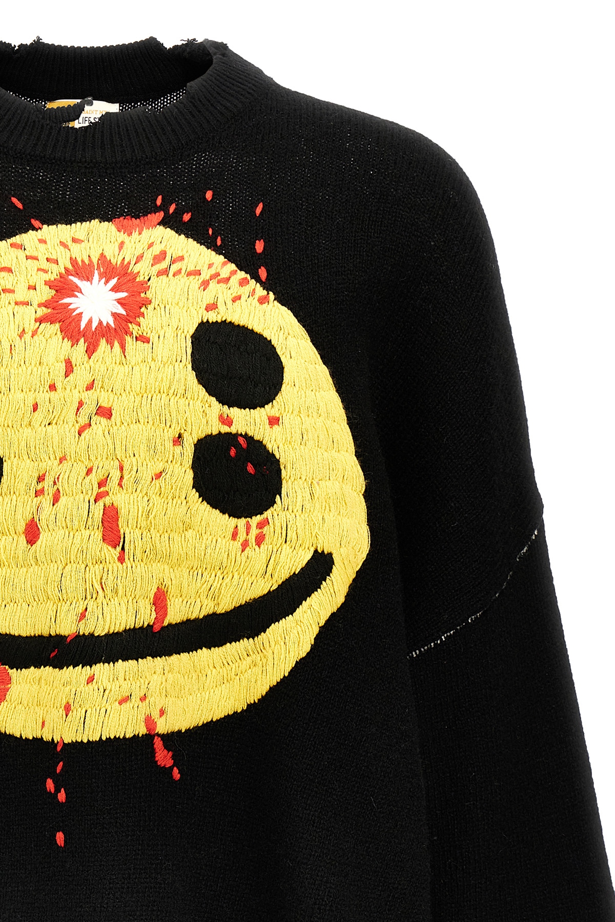 'Smile' wool blend sweater, embroidered front and back, crew neck, long sleeves with dropped shoulders.