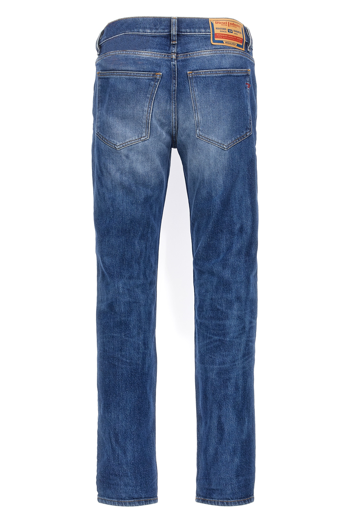 '2019 D-Strukt' used-effect cotton denim jeans with regular waist and straight leg, zip and button closure, five pockets, back logo tag.