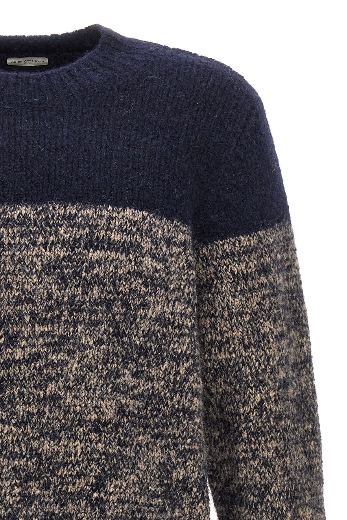'Moritz 9709' alpaca sweater with crew neck, contrast intarsia, long cuffed sleeves.