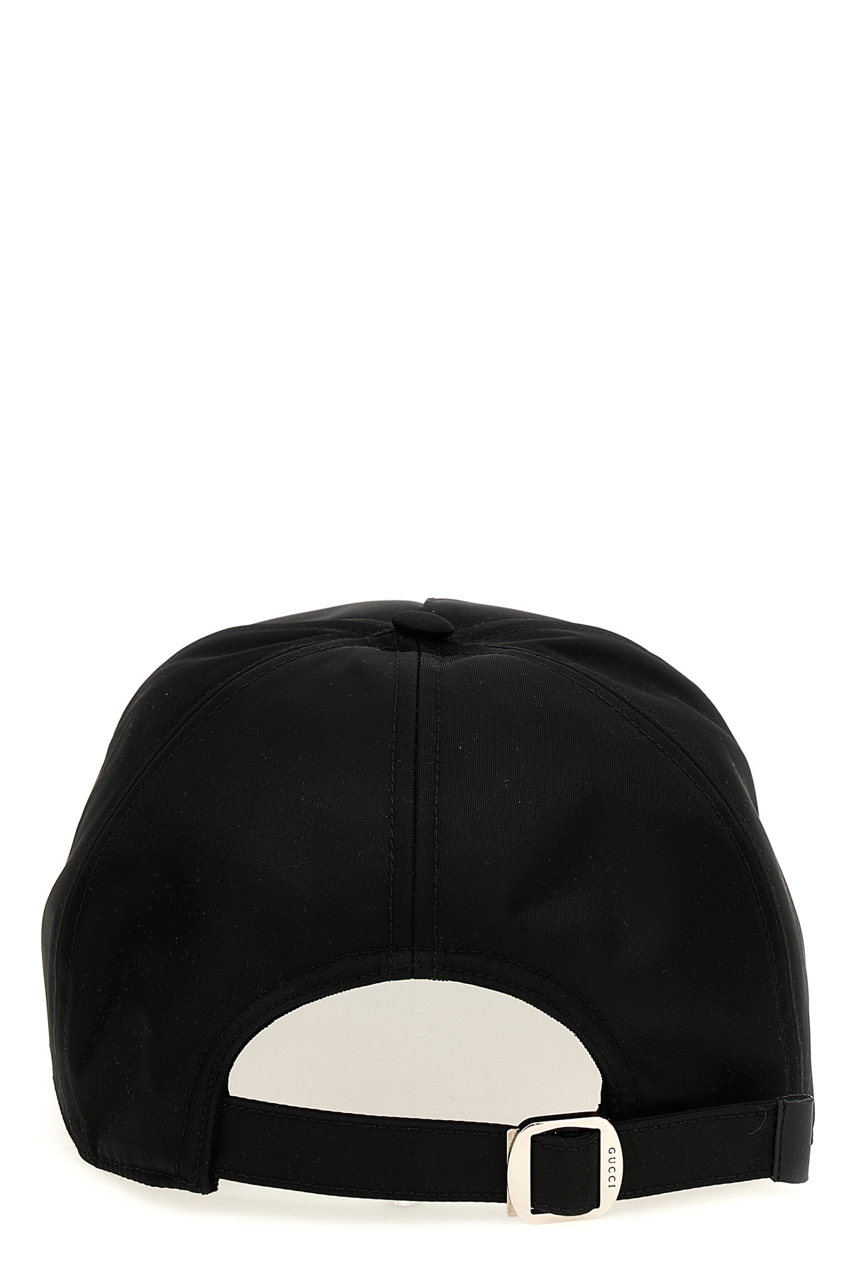 Nylon cap with embossed Gucci logo, ring detail with Web Ribbon, adjustable velcro closure.