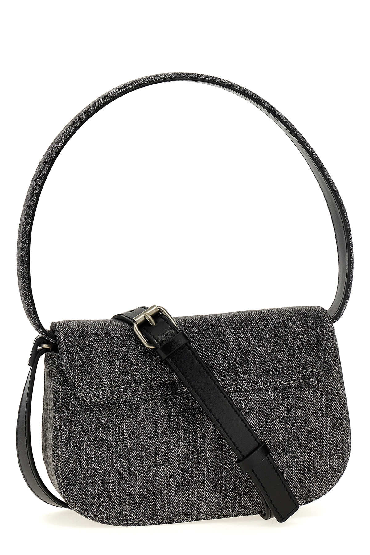 '1DR' shoulder bag in stonewashed cotton denim with bleach effect, tone-on-tone leather details, flap closure with maxi metal Oval D logo, adjustable and removable shoulder strap.