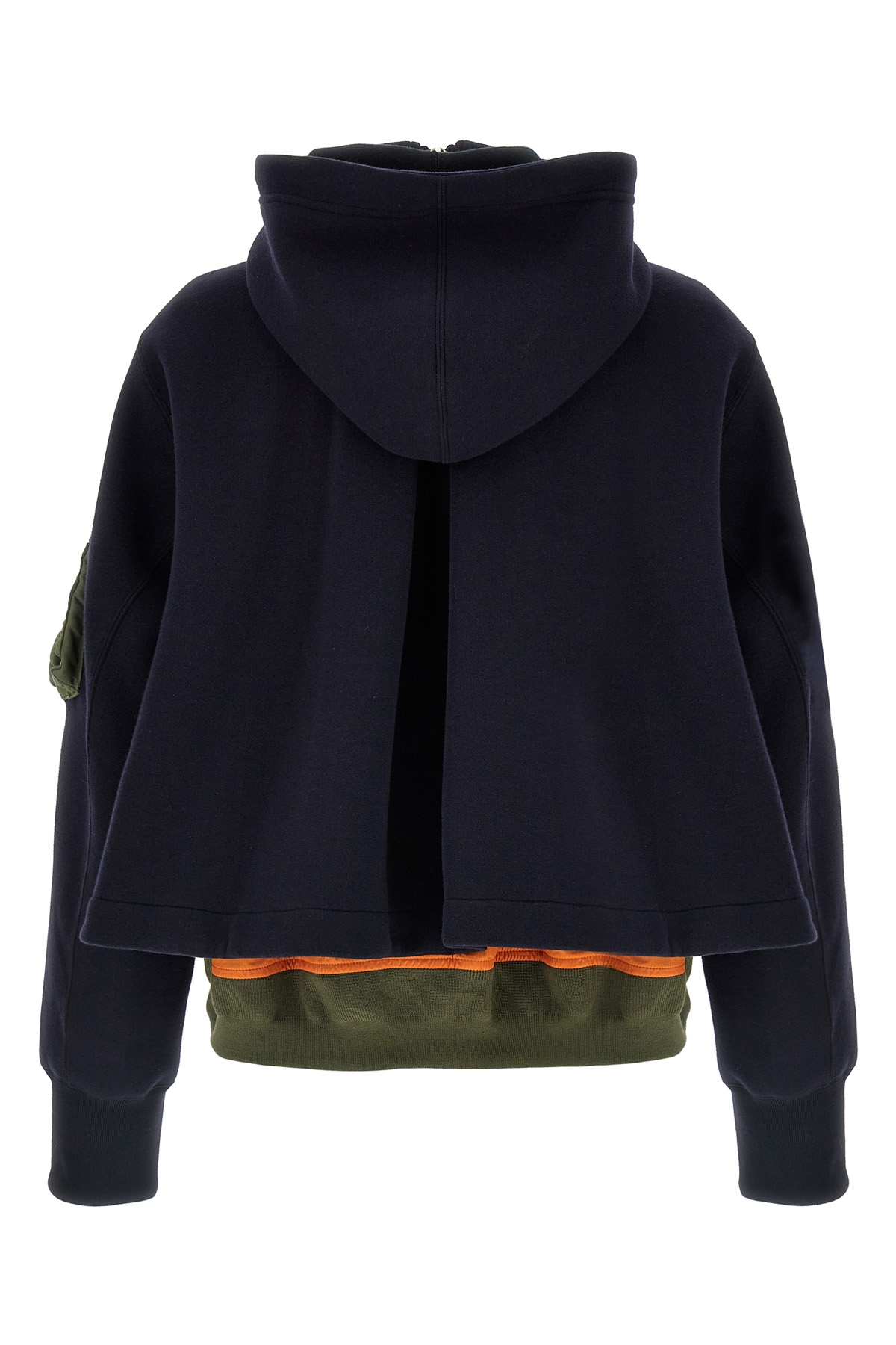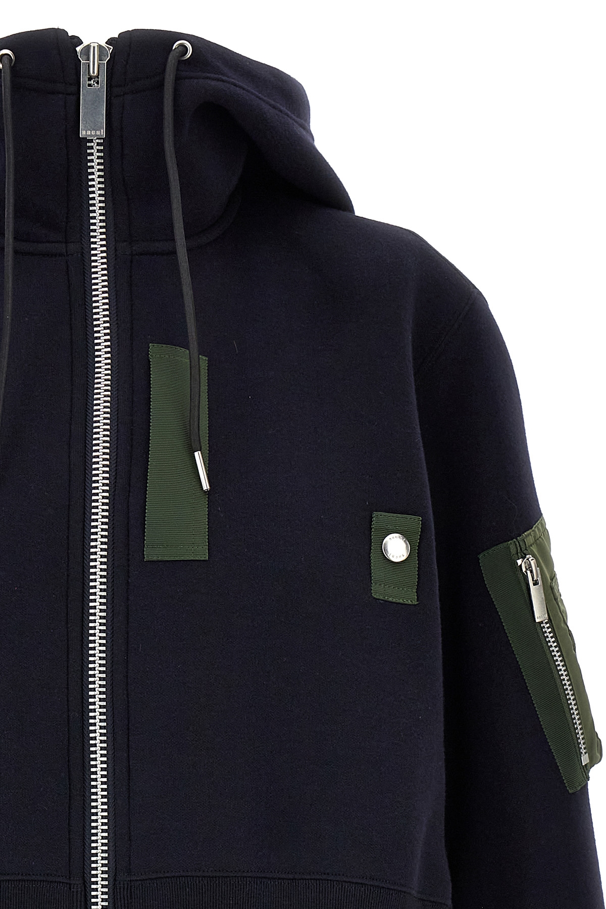 'Sponge' cotton blend hoodie with nylon inserts, zip closure, pockets, long cuffed sleeves.
