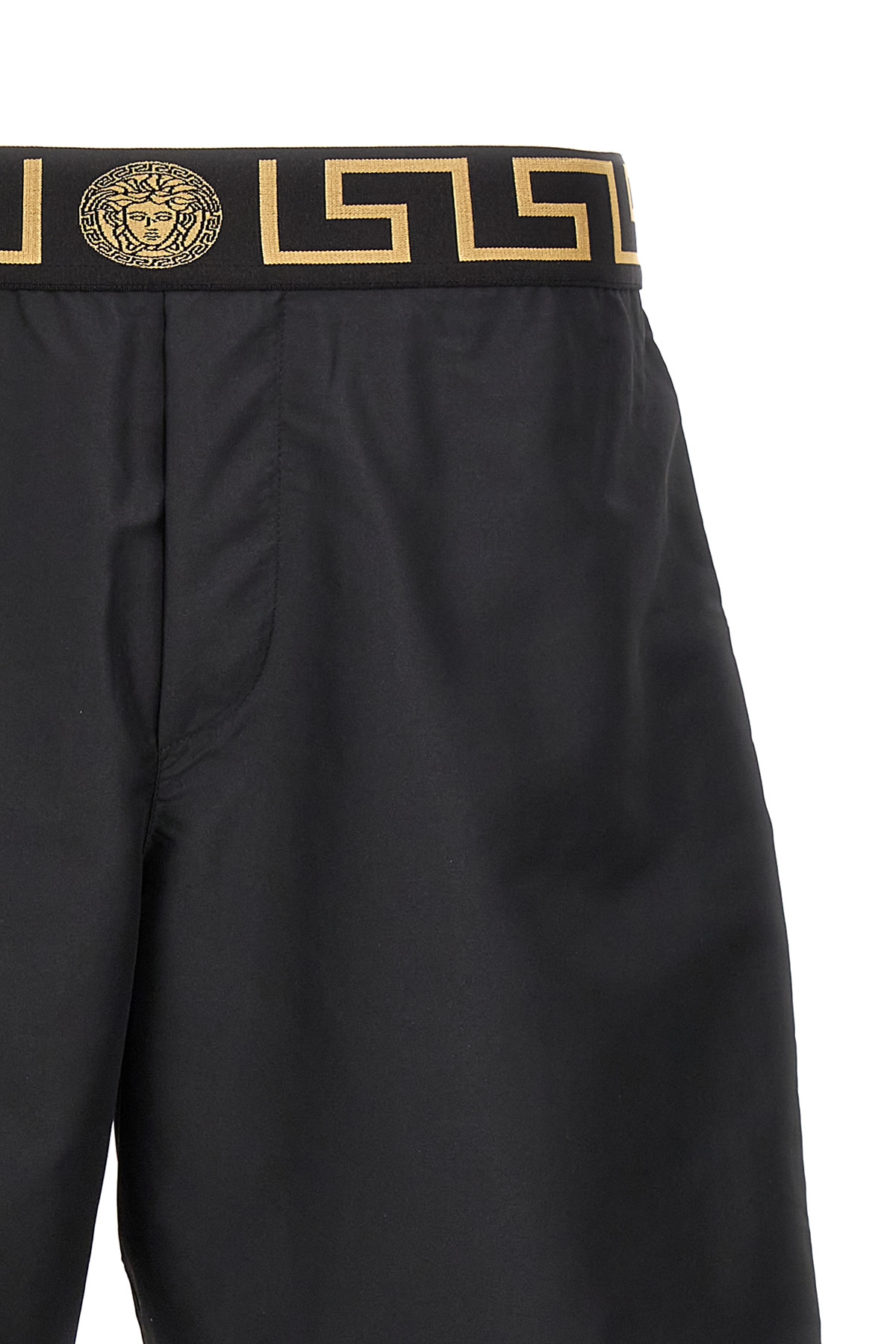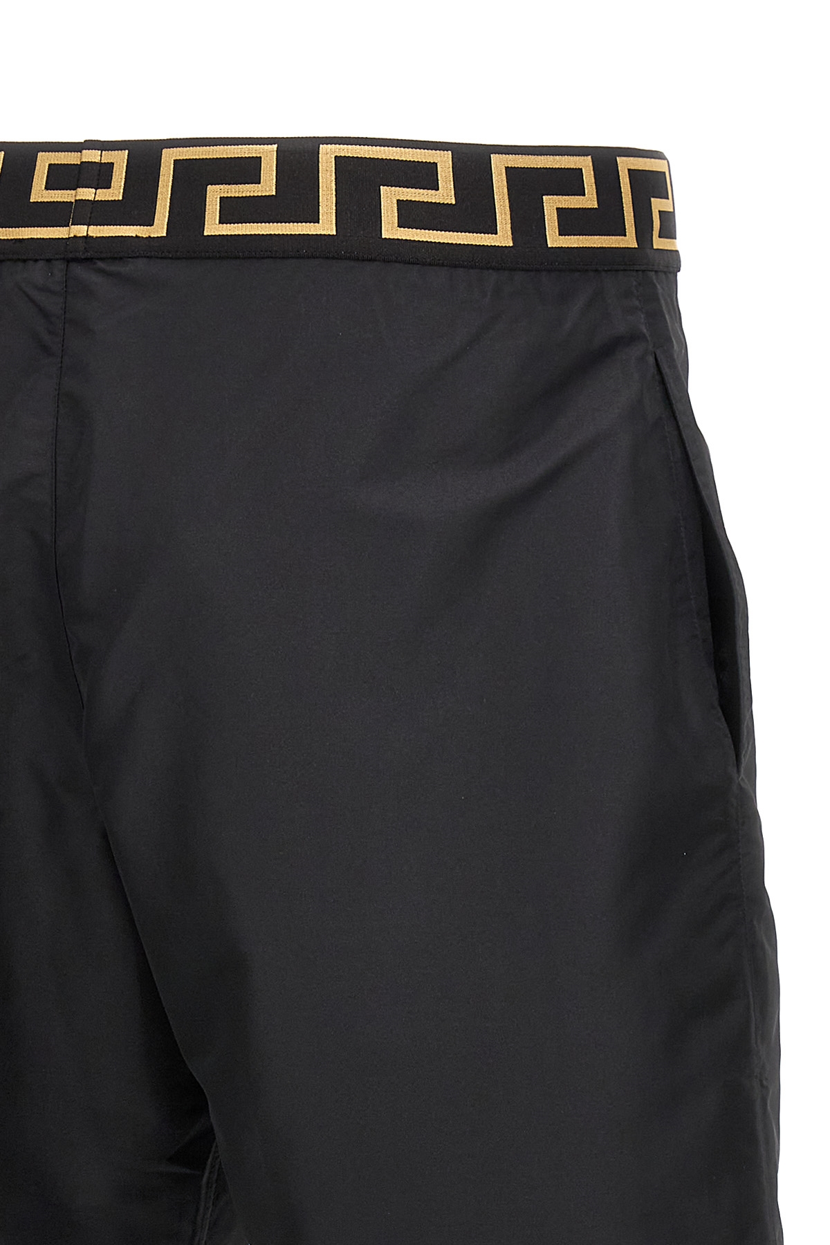Nylon swimsuit with elastic waistband pattern 'Greca', pockets.