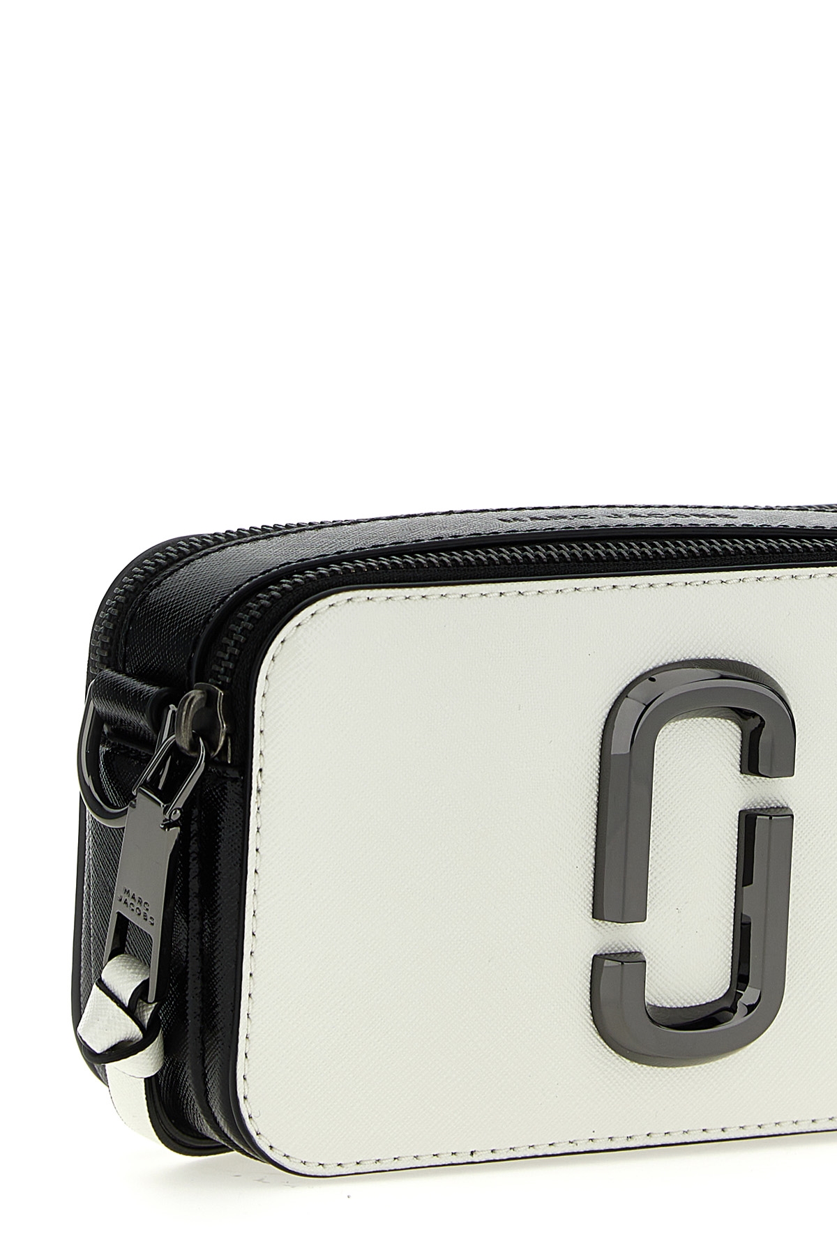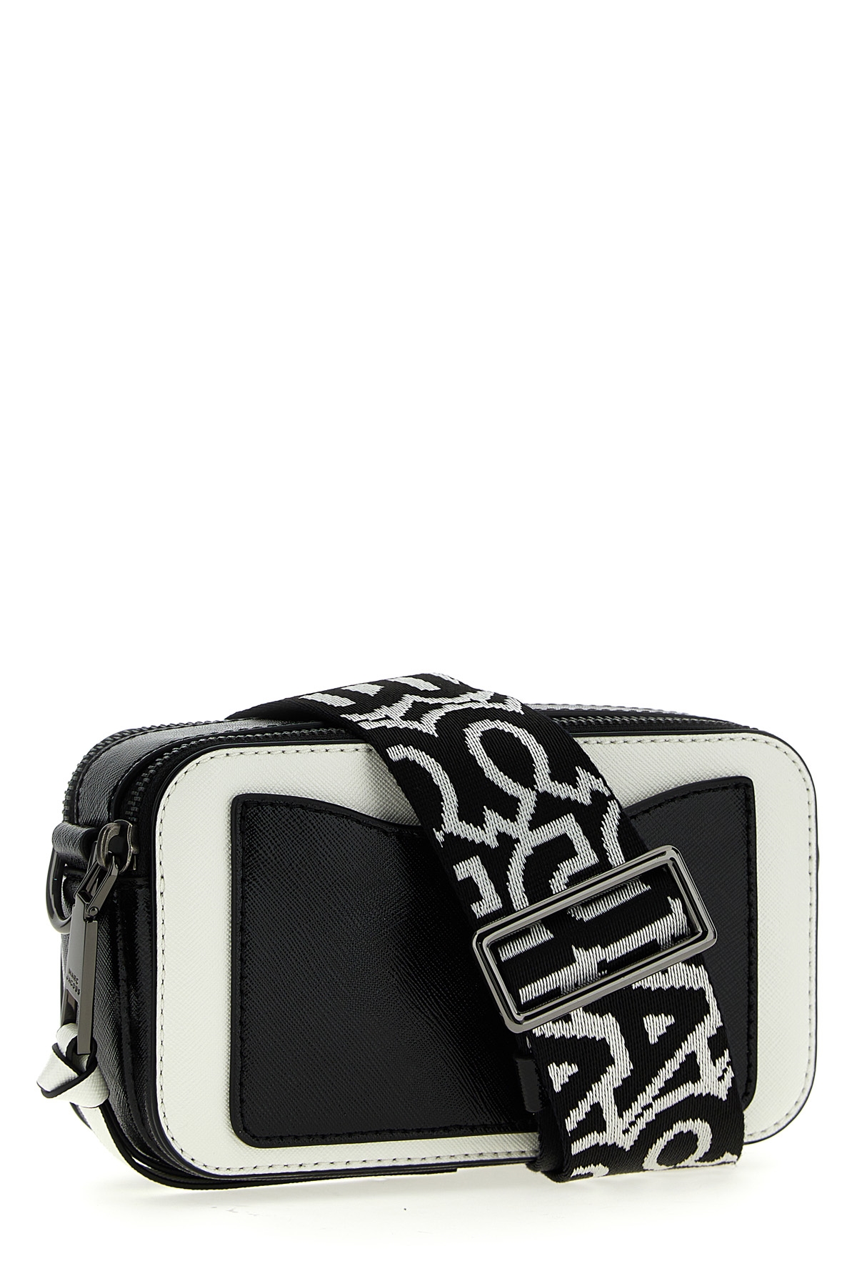 The Snapshot leather crossbody bag, camera bag style, with zipper closure and a logo-printed shoulder strap.