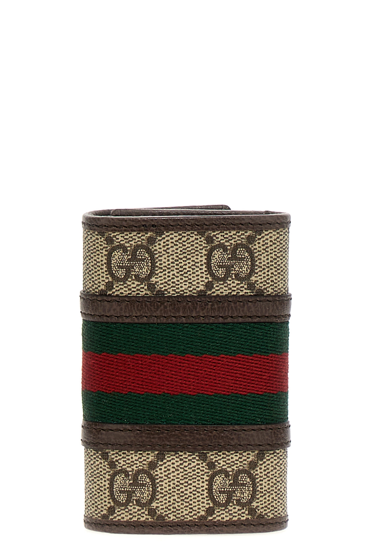 'Ophidia GG' keyring in GG Supreme fabric with leather details, web ribbon and metal logo application, button closure.
