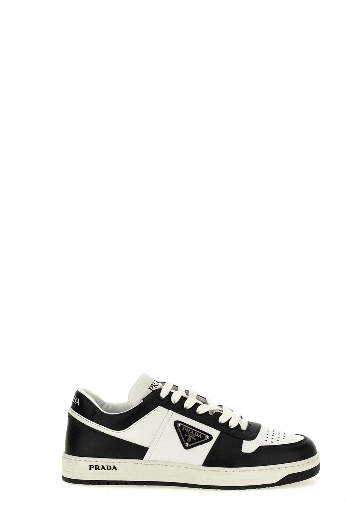 'Downtown' leather sneakers with triangle enameled metal logo on the side, lace-up closure, rubber sole.
