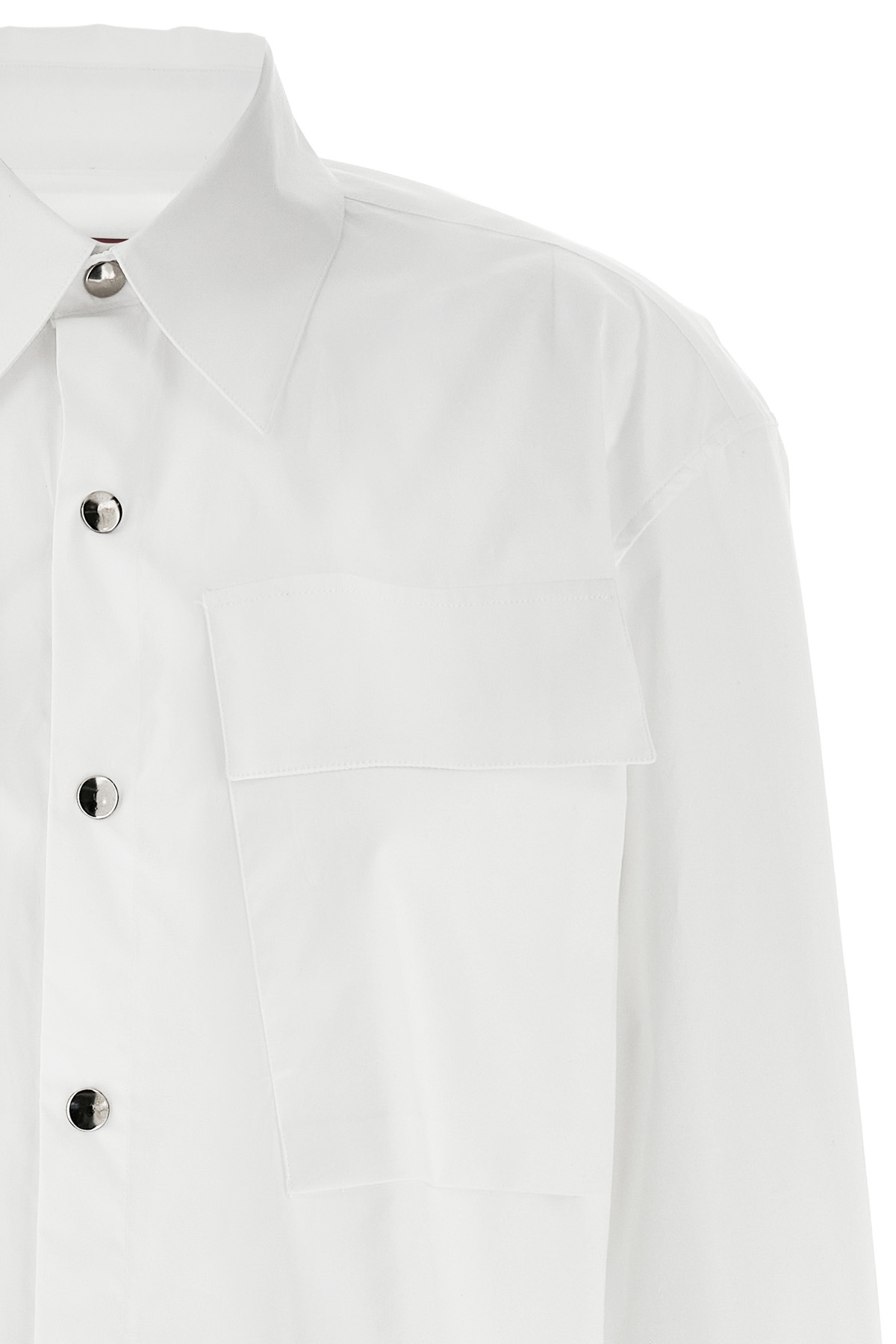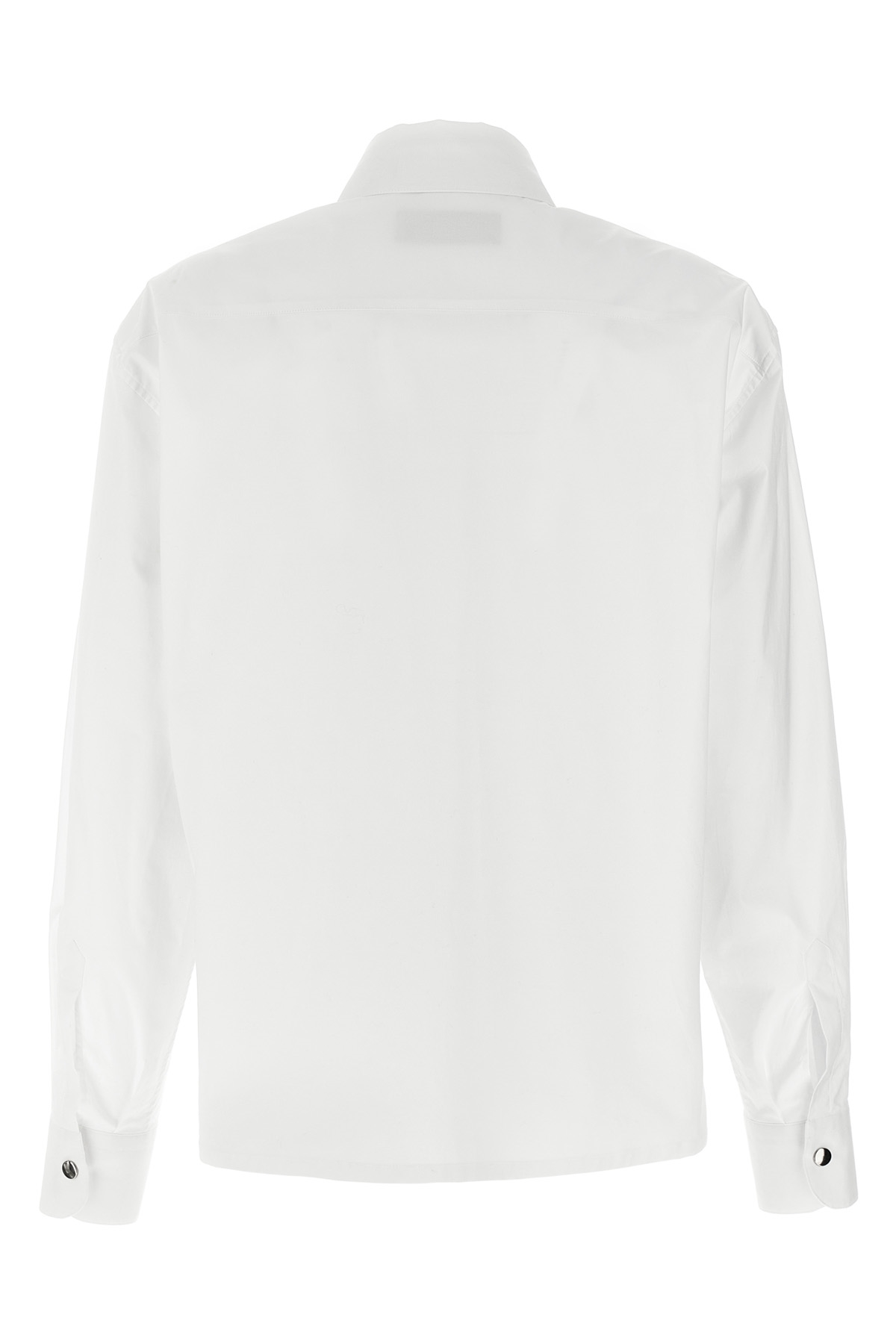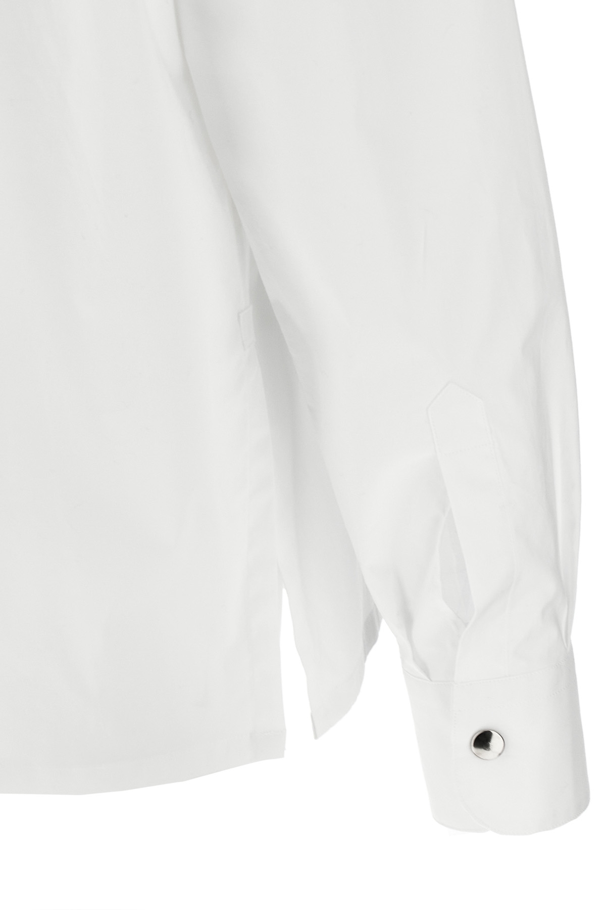 'Bruna' cotton poplin shirt with snap button closure, pockets, long cuffed sleeves, side slits.