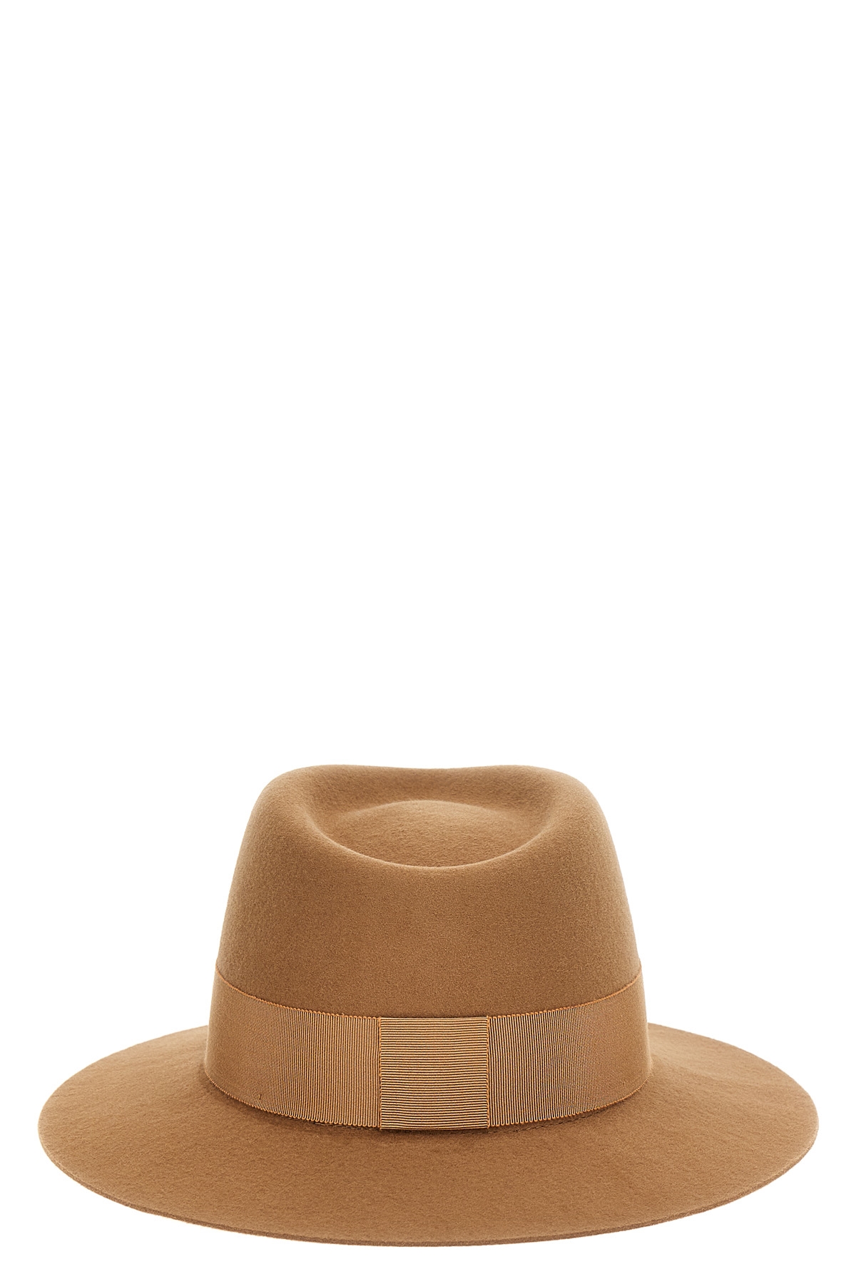 Andre' wool felt hat, fedora style with grosgrain ribbon and tone-on-tone metal logo.