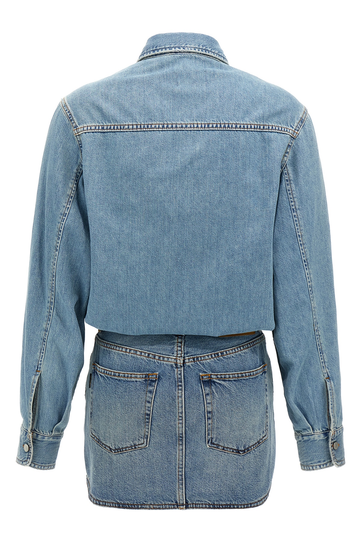 'Tamu' cotton denim dress with top with button closure, oversized fit, pocket, long sleeves with cuffs and dropped shoulders and mini skirt with zip and button closure, five pockets, back suede logo tag.