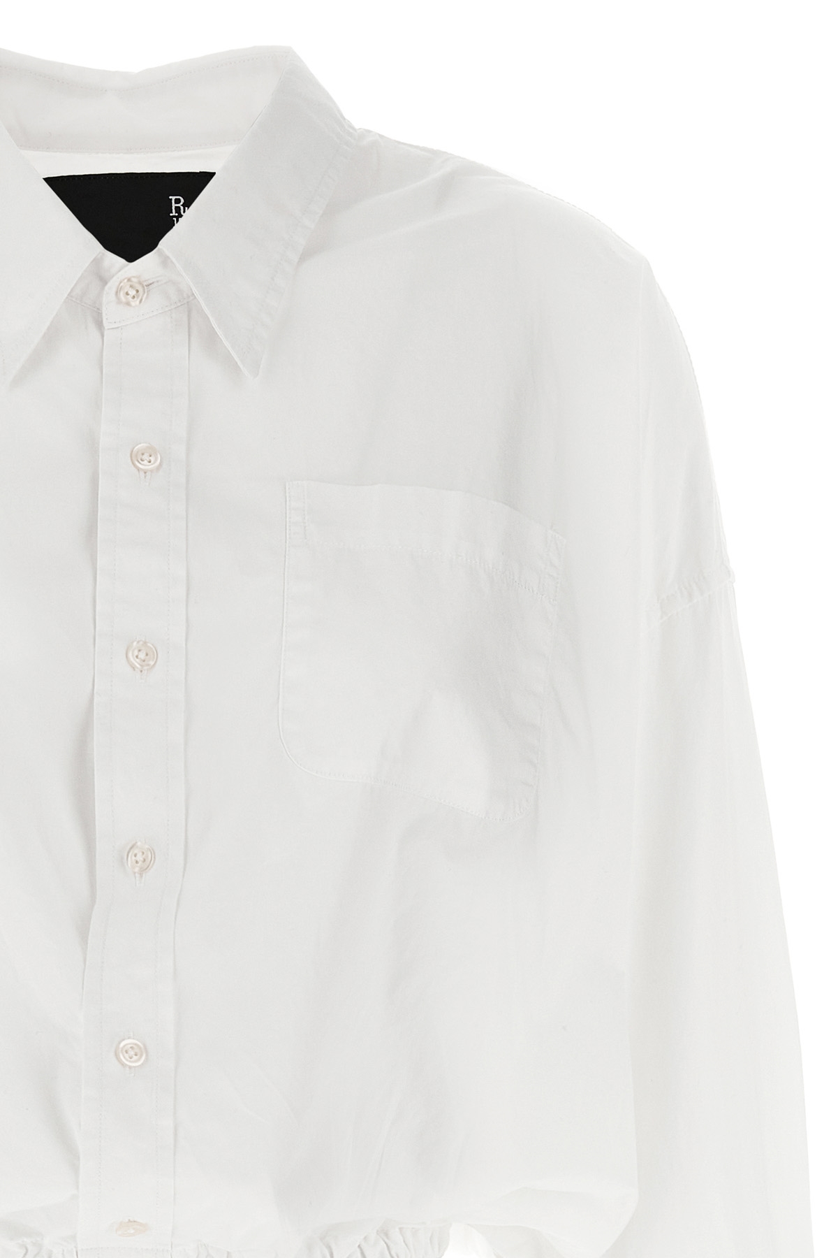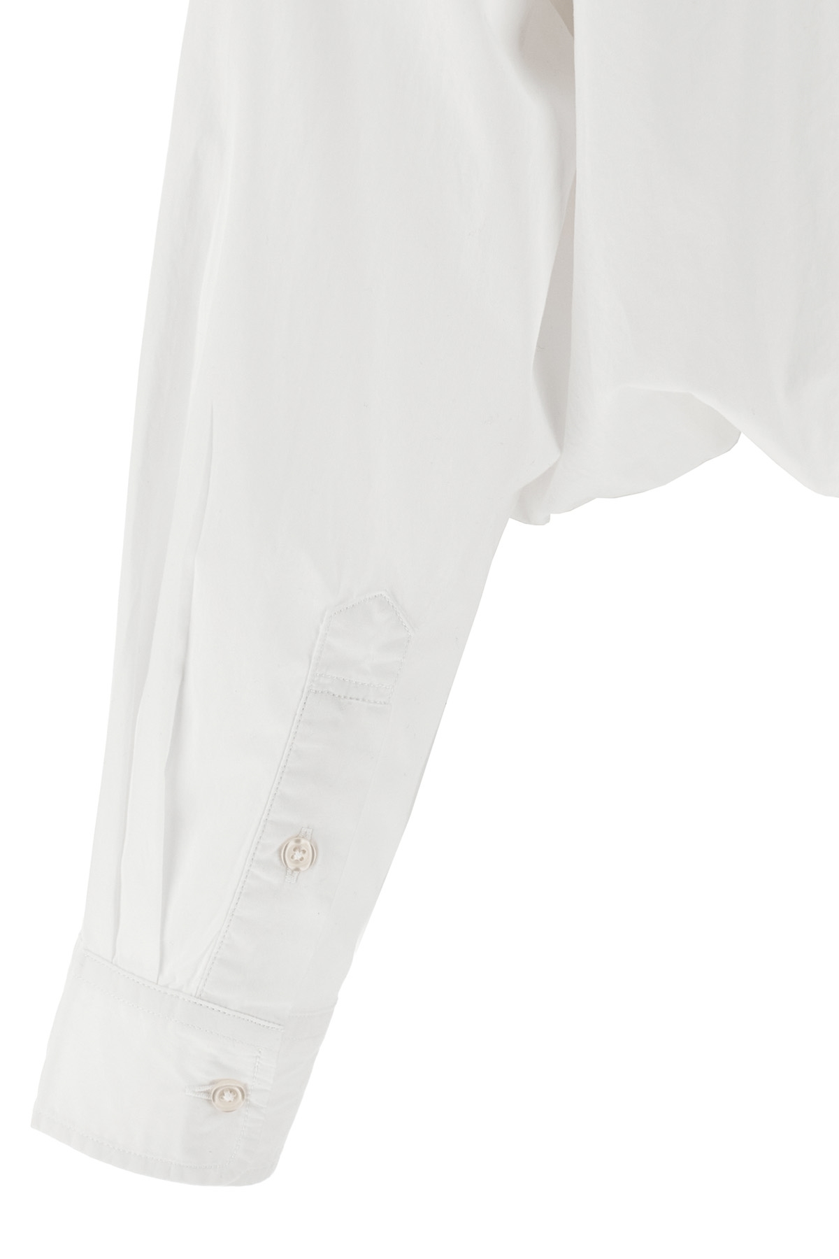 'Crossover Bubble' cotton shirt with button closure, breast pocket, long sleeves with cuffs and dropped shoulders, elastic hem. The shirt is designed not to be completely buttoned.