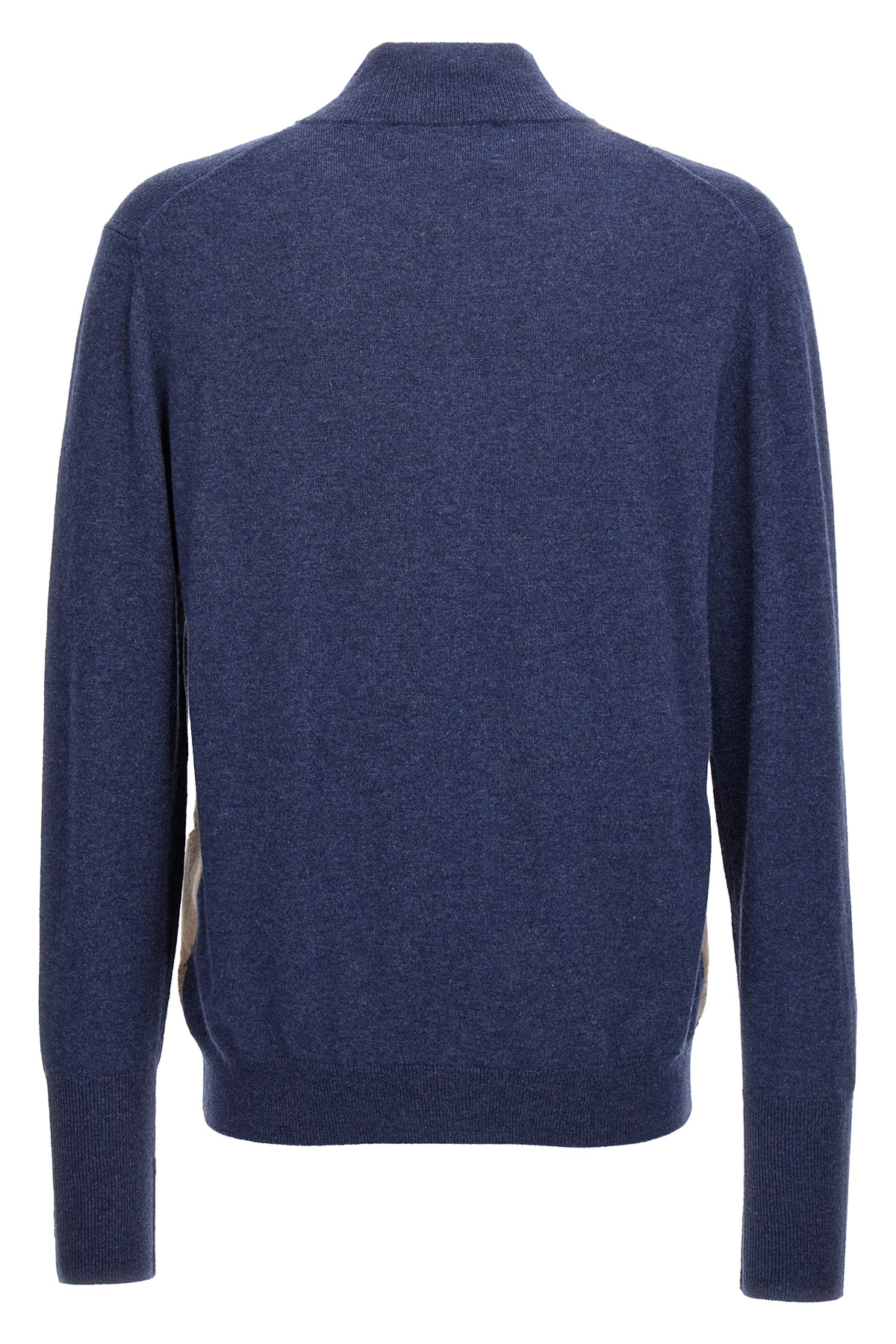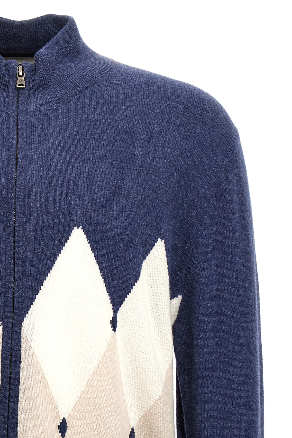 Cashmere cardigan with 'Argyle' pattern, zip closure, long cuffed sleeves.