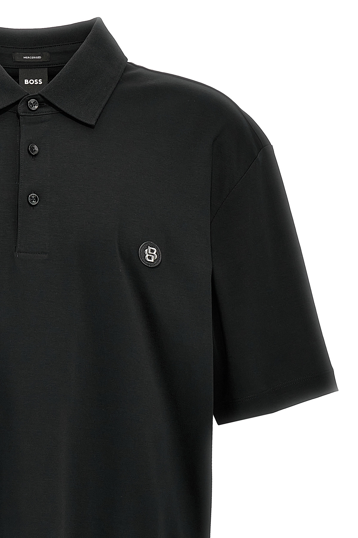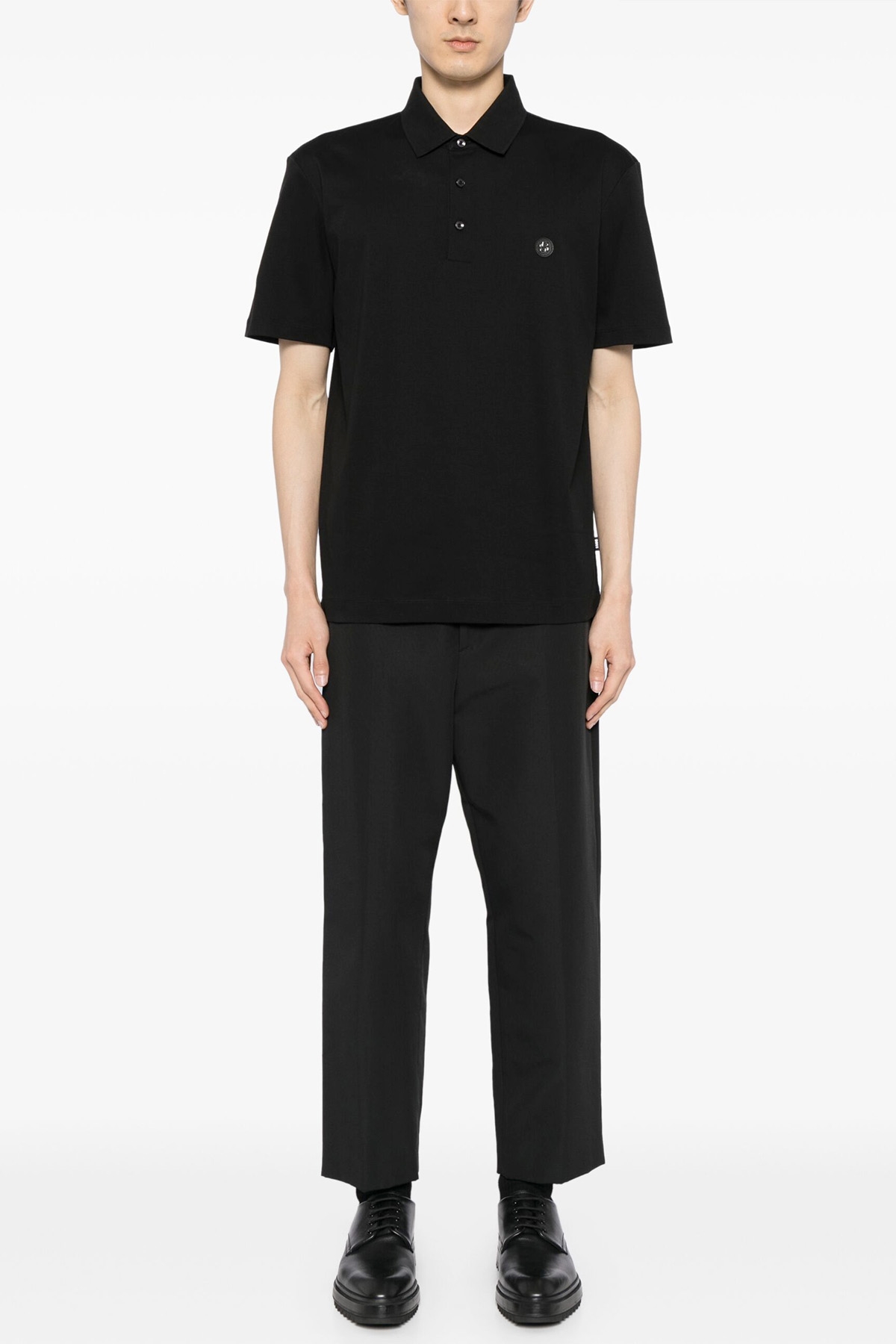 Mercerized cotton 'C-Parris' polo shirt, metal logo patch, button collar, short sleeves, side vents