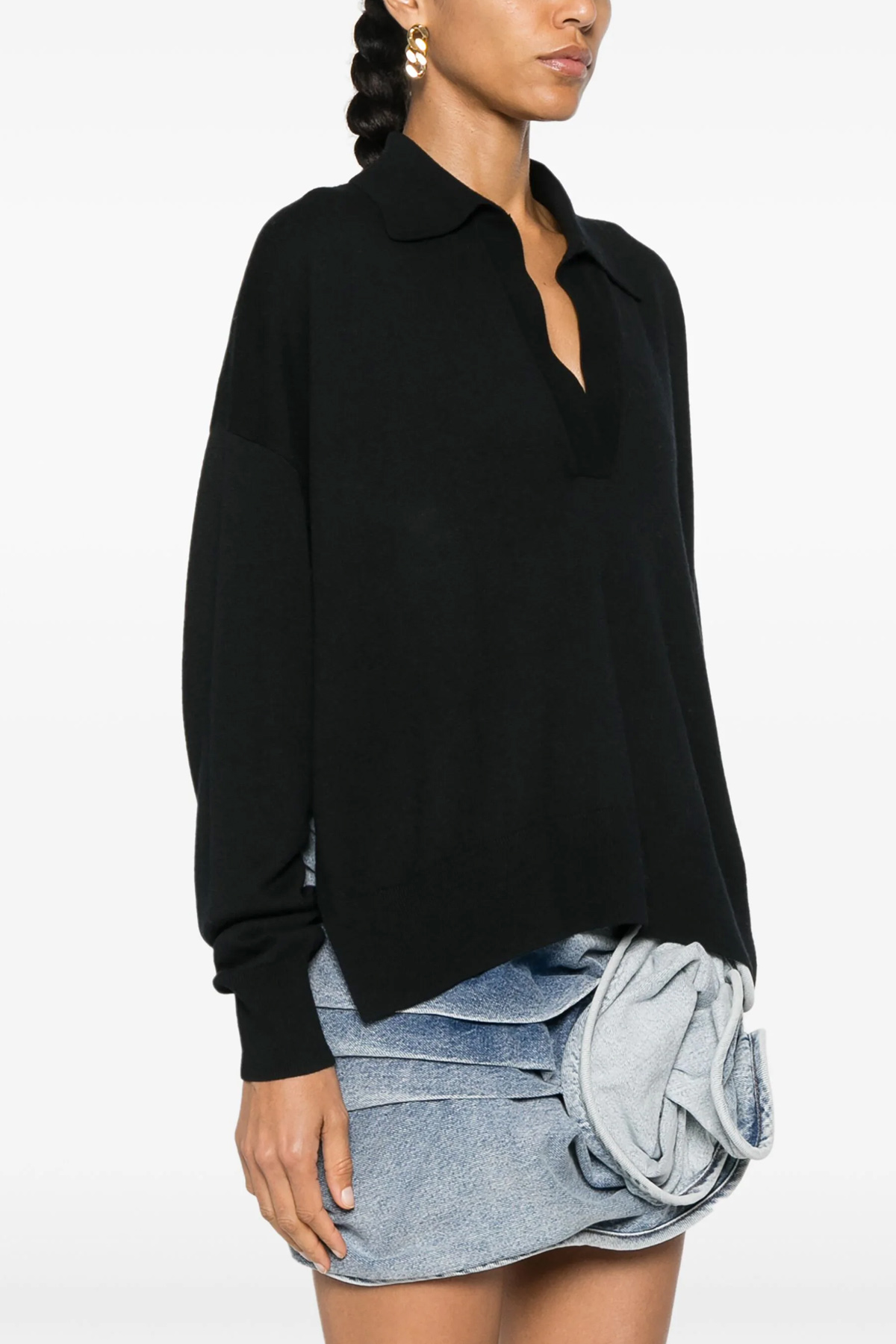 'Galix' viscose and wool sweater with V-neck and collar, long sleeves, side slits.
