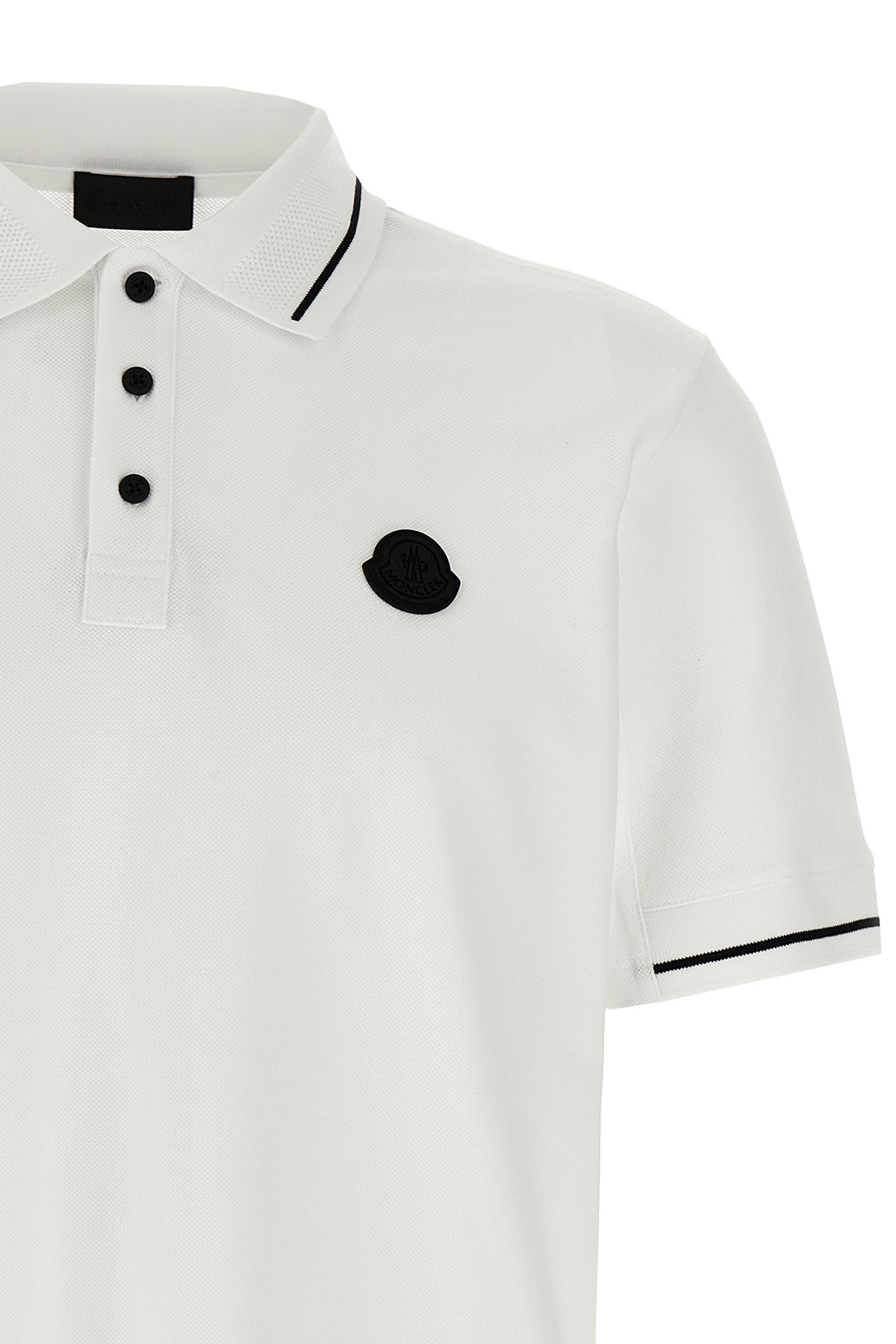 Pique cotton polo shirt, front silicone logo patch, collar with contrasting and crochet details, buttons, short sleeves, side splits.