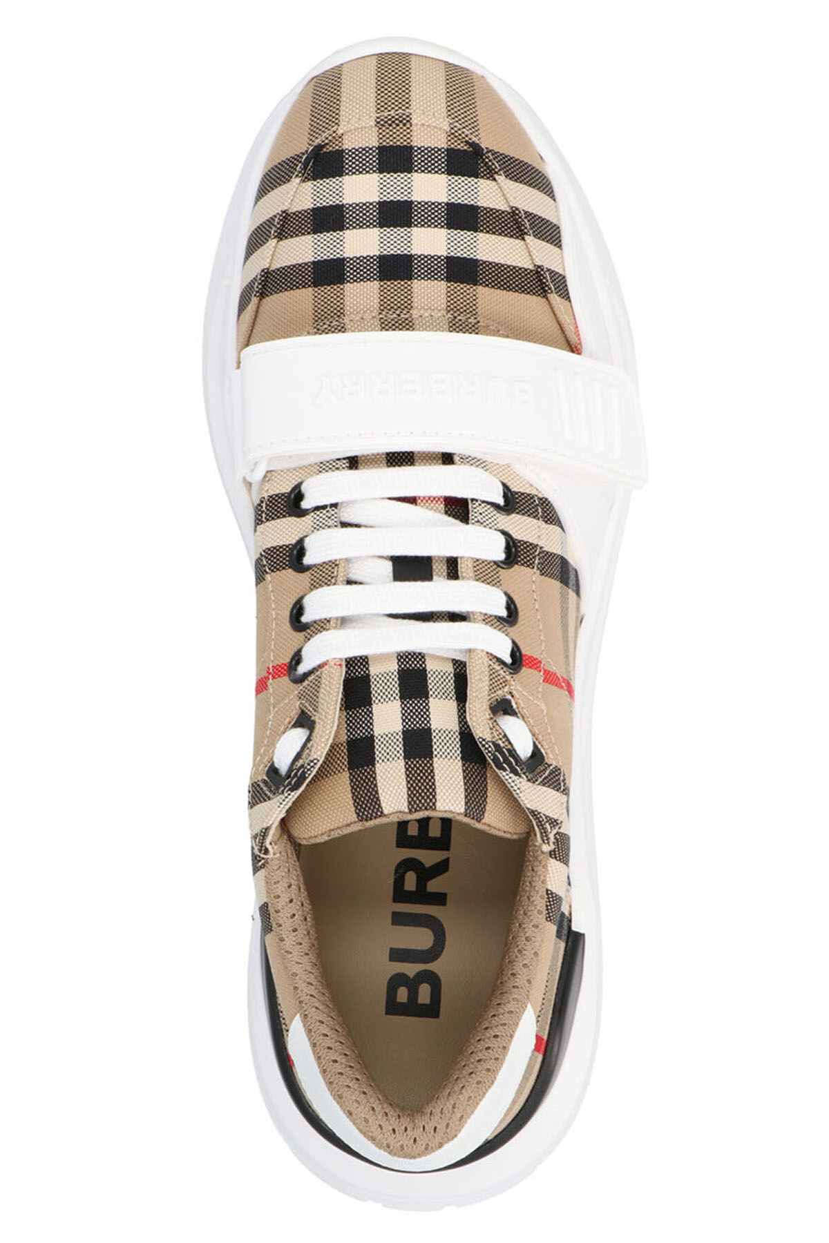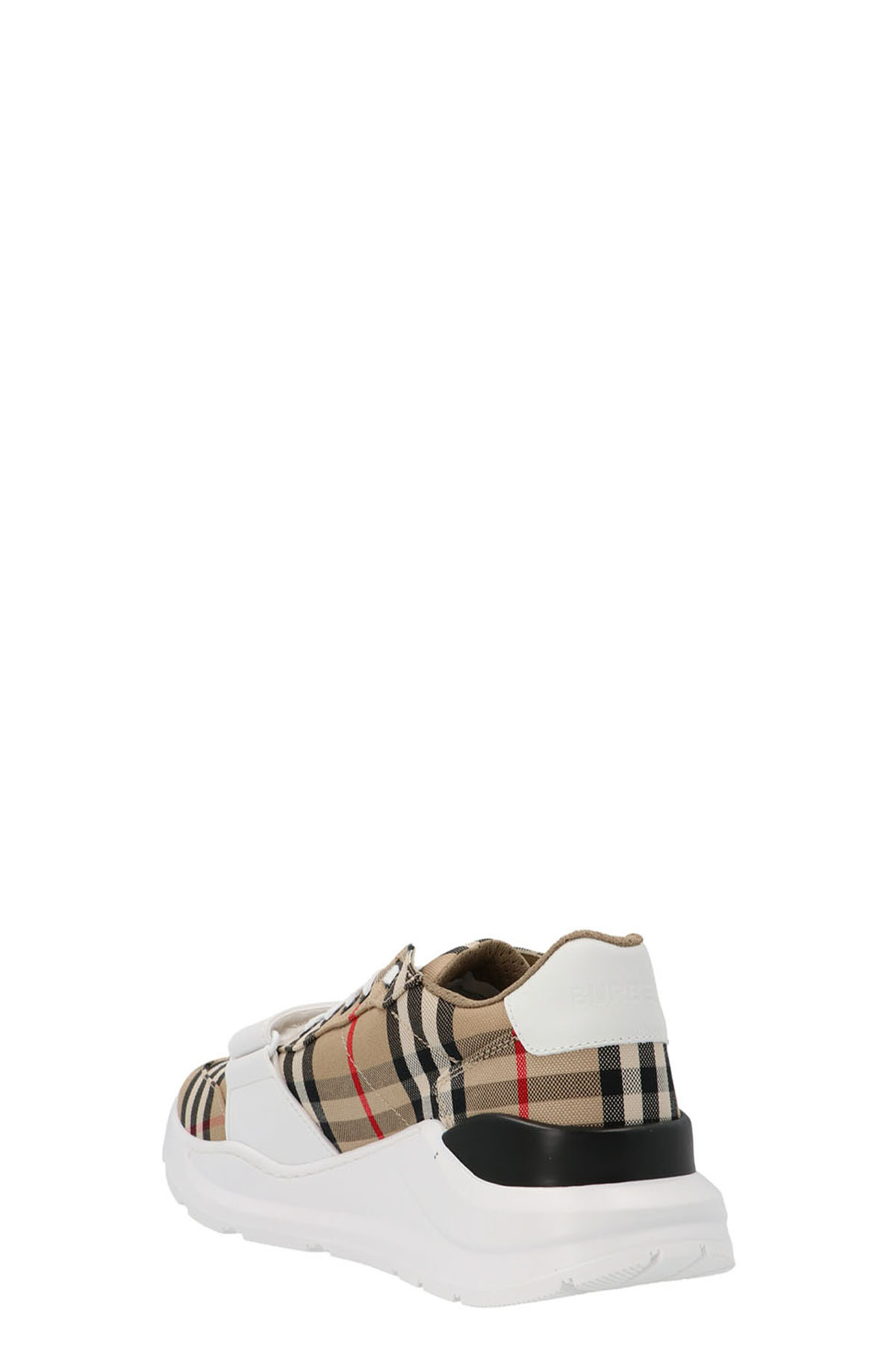 'New regis' low top and lace up sneakers with a vintage check pattern, leather inserts, and a rubber sole.