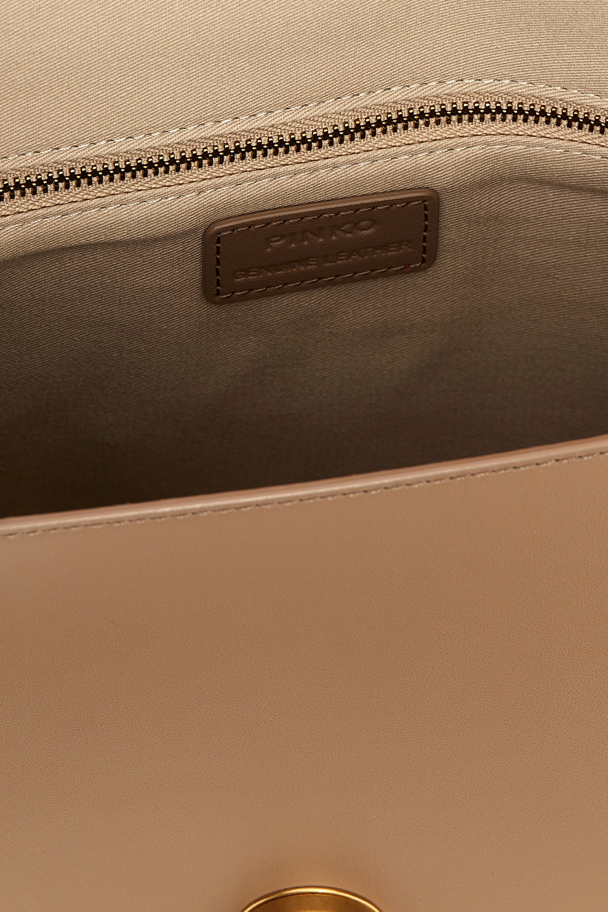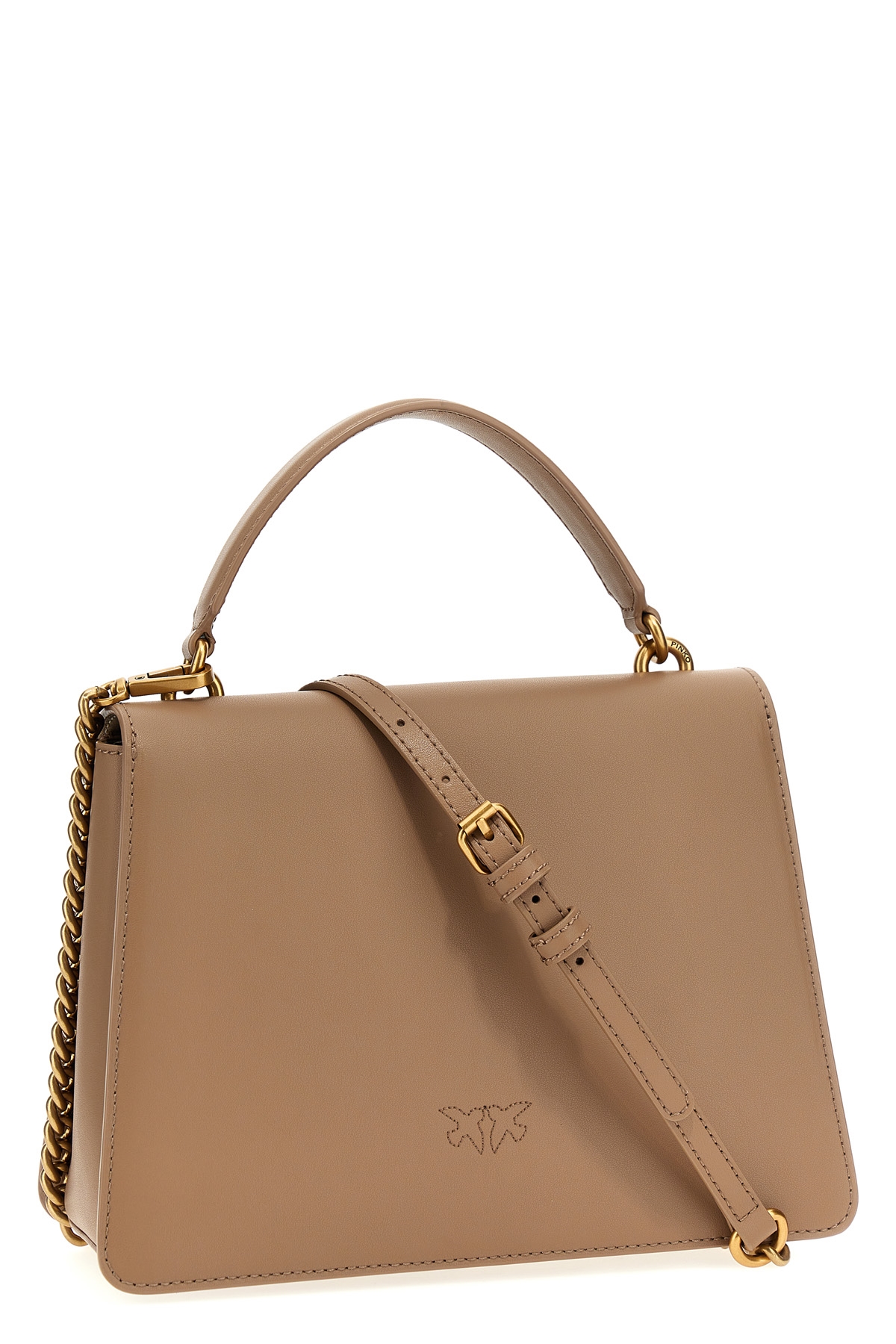 'Love One Top Handle' leather handbag, magnetic flap closure with front metal logo applique, handle, removable leather shoulder strap.