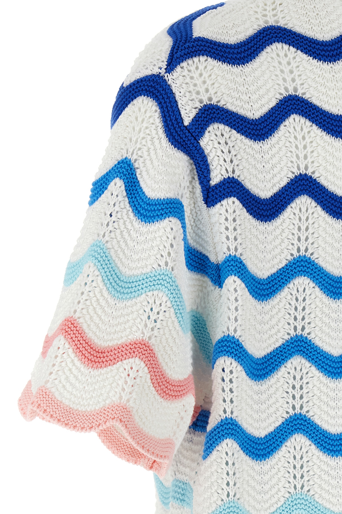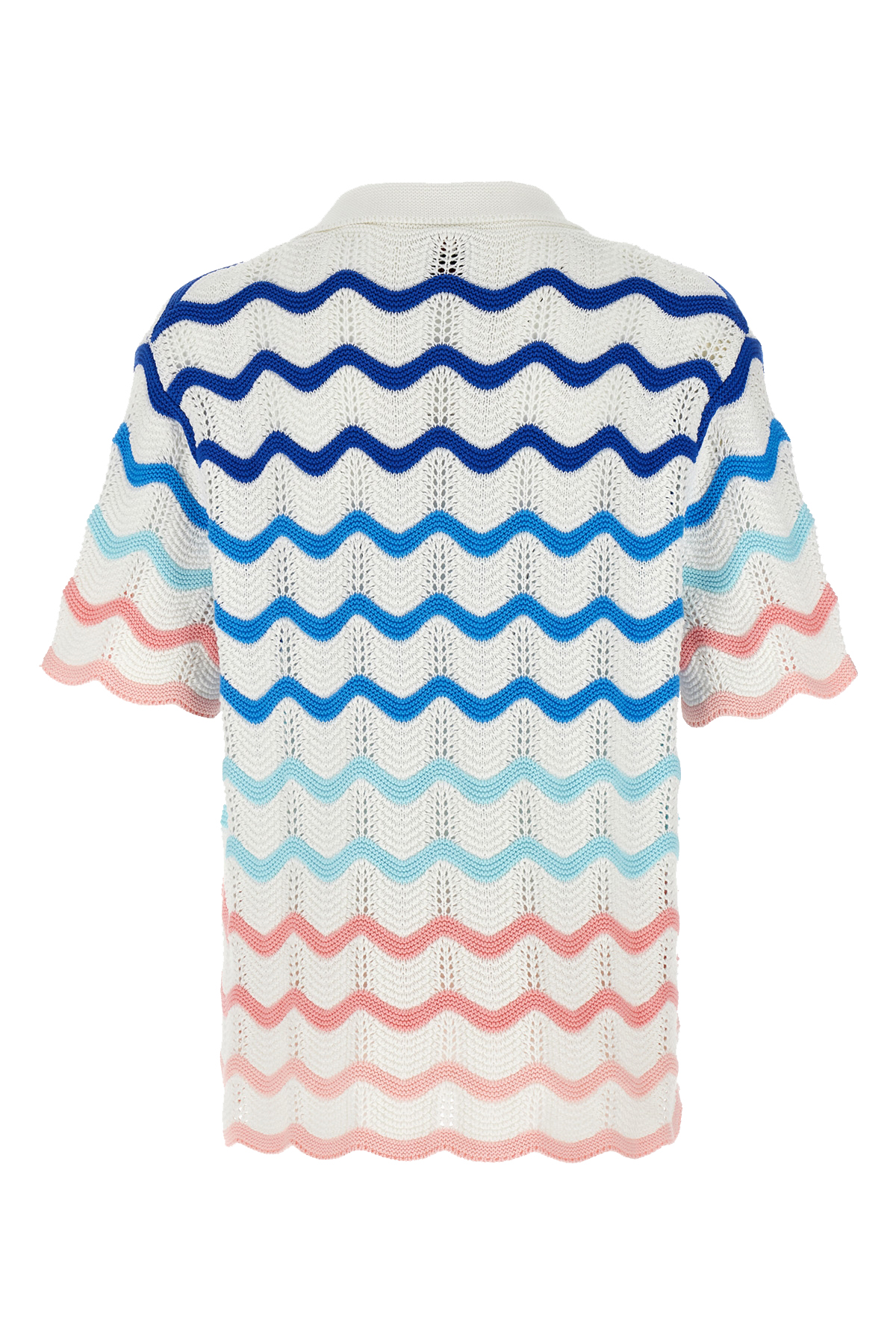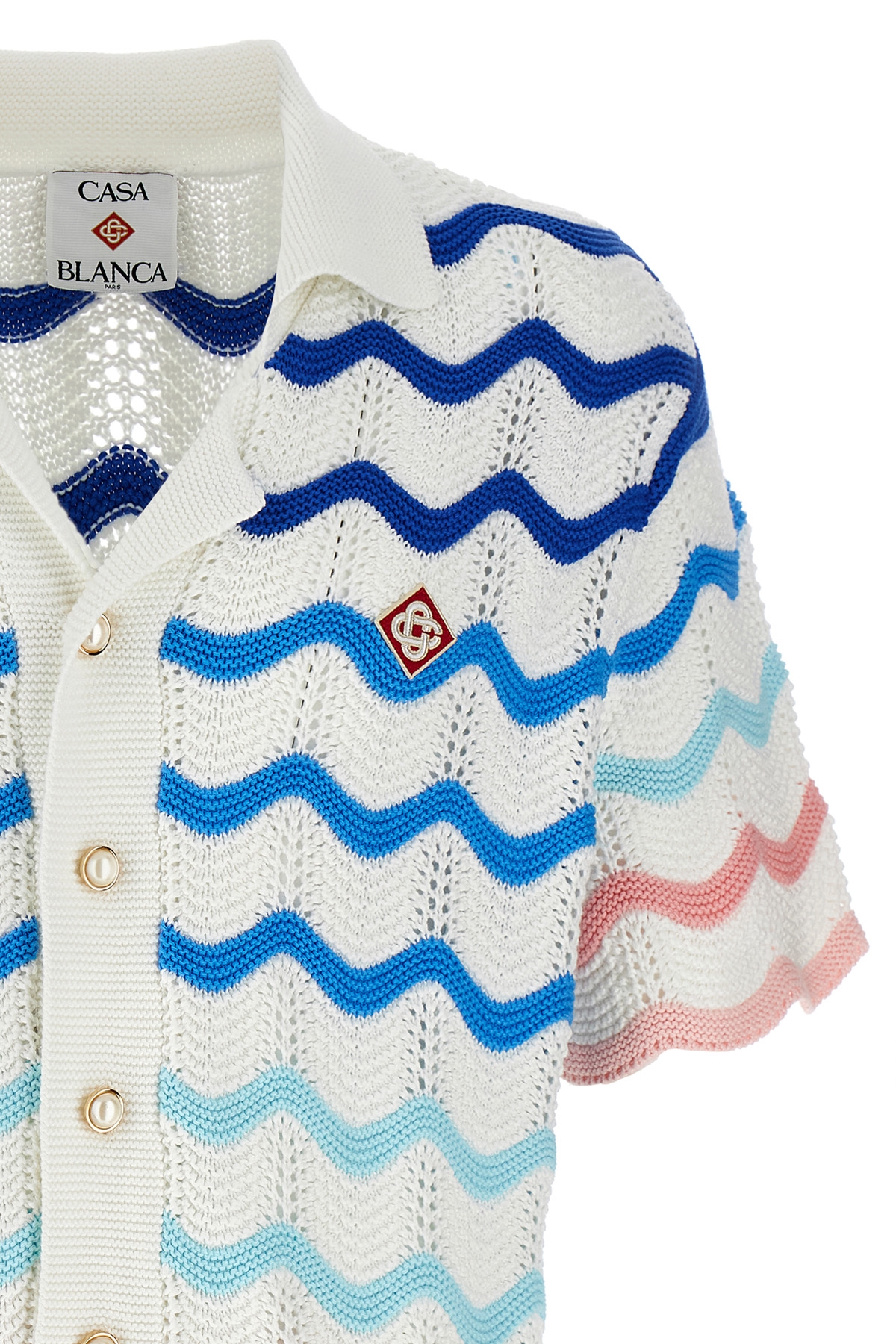 'Gradient Wave' crocheted cotton shirt, front logo patch, button closure, short sleeves.