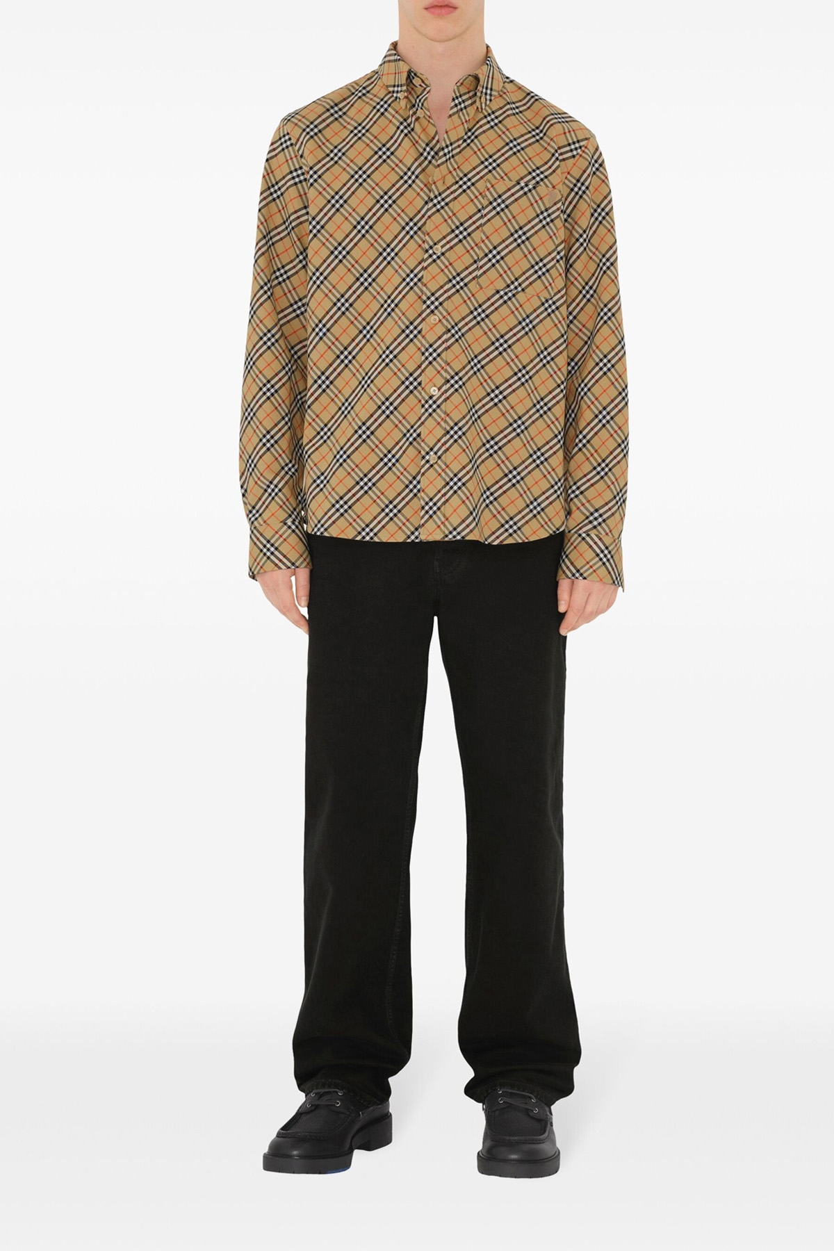 Check print cotton shirt, button down model, pocket with logo embroidery, button closure, long cuffed sleeves.