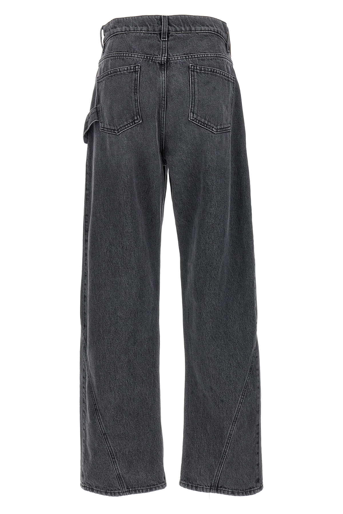 'Twisted Workwear ' cotton denim jeans with front stitching, front patch pocket detail with embroidered logo, button and zip closure.