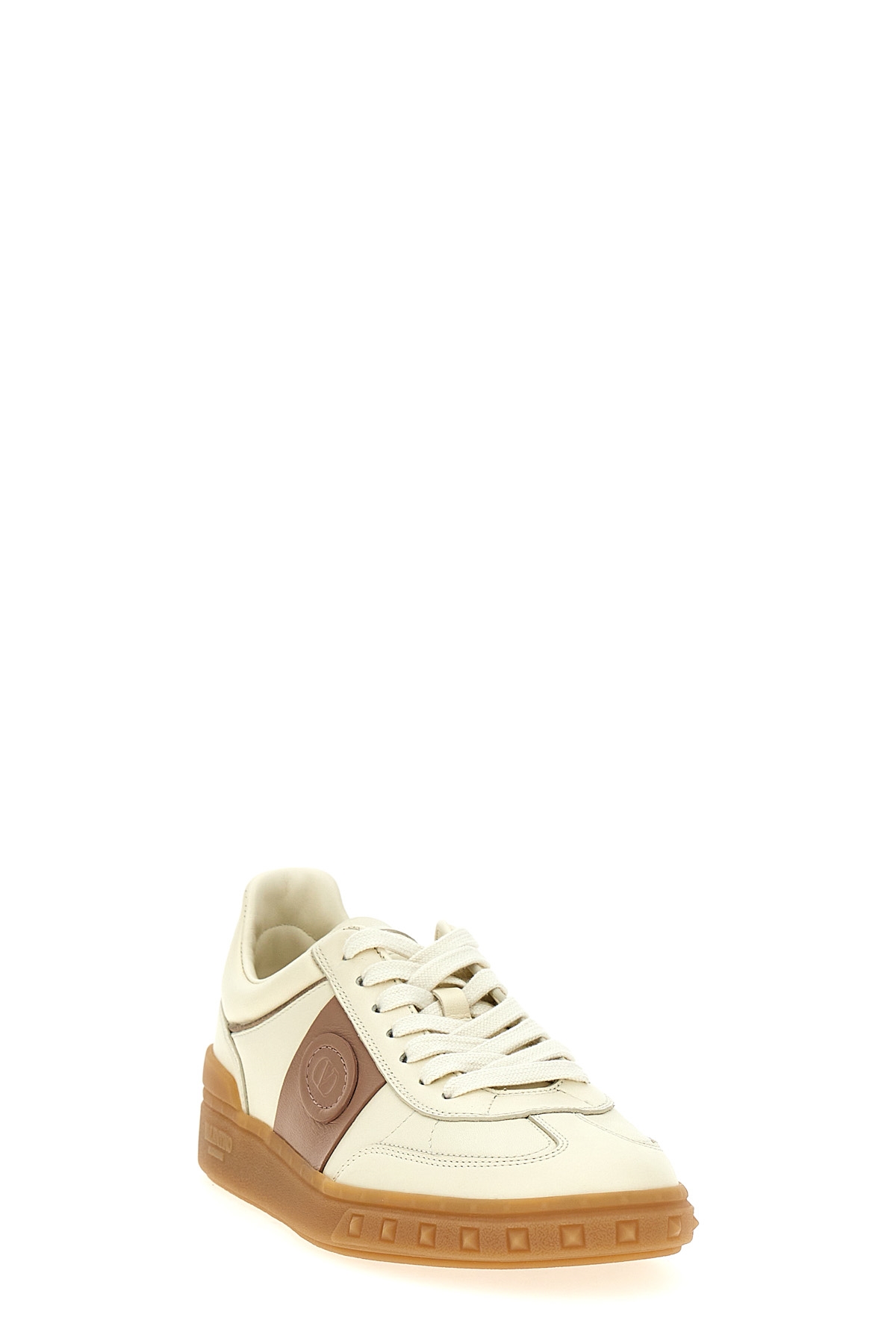 'Upvillage' leather sneakers with contrast band with side logo patch, lace-up closure, rubber sole.