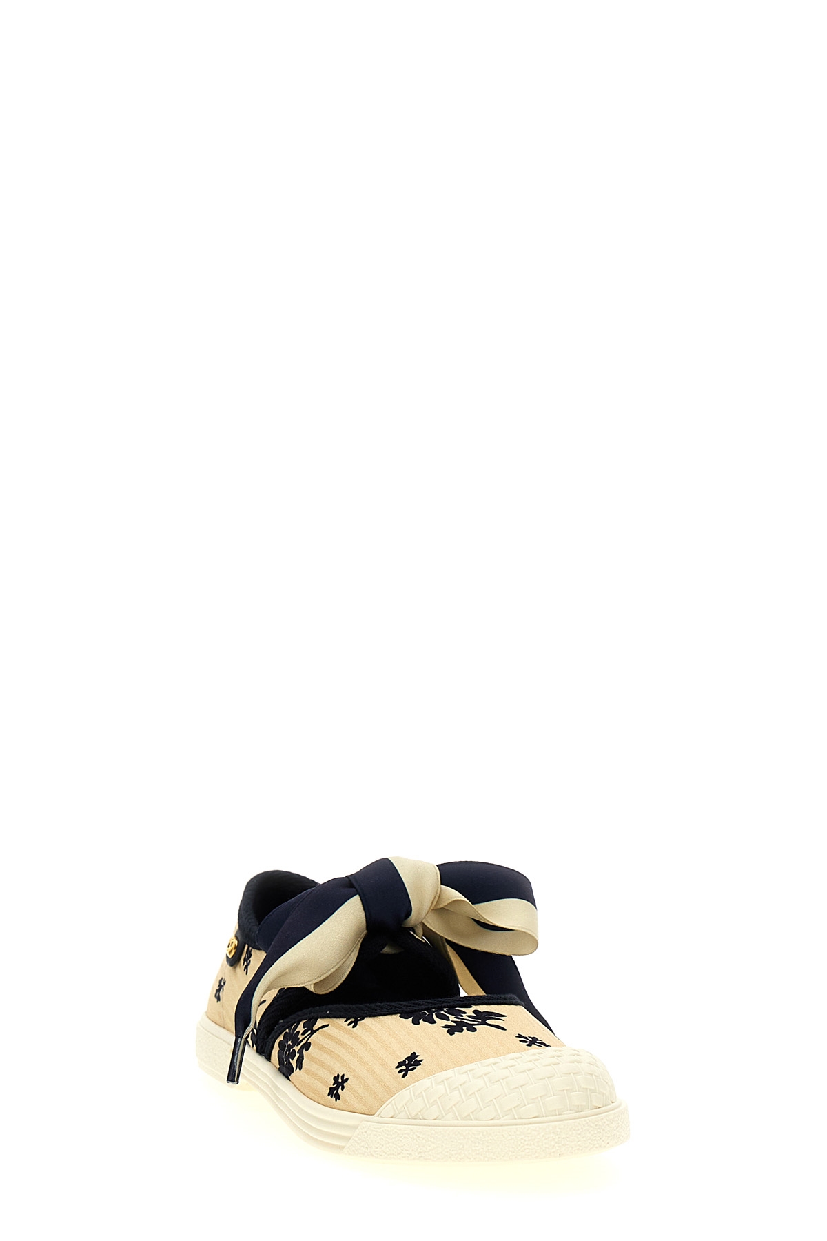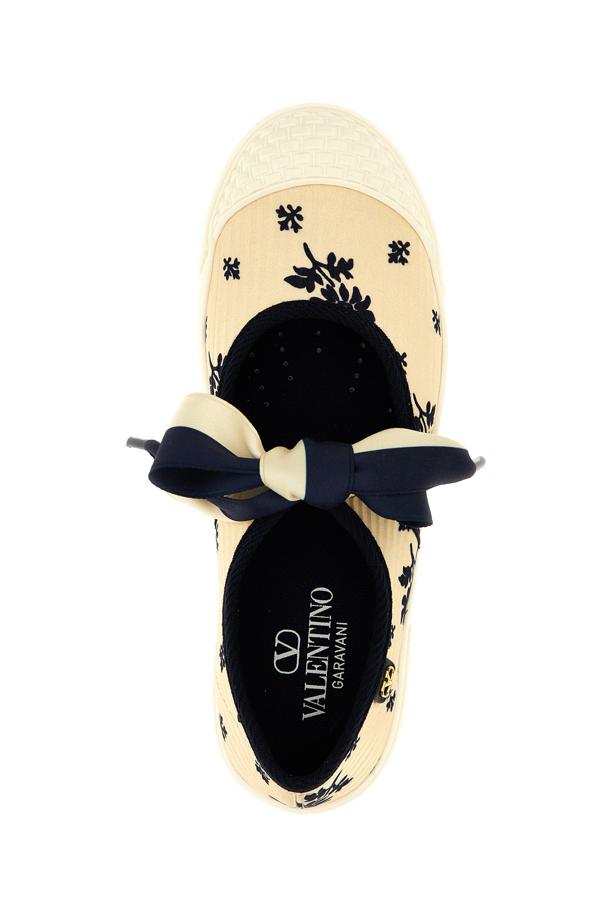 'Bay By Bay' Papier Floral print silk ballet sneakers, fabric bow closure, VLogo Signature metal detail on the side, rubber sole and toe.