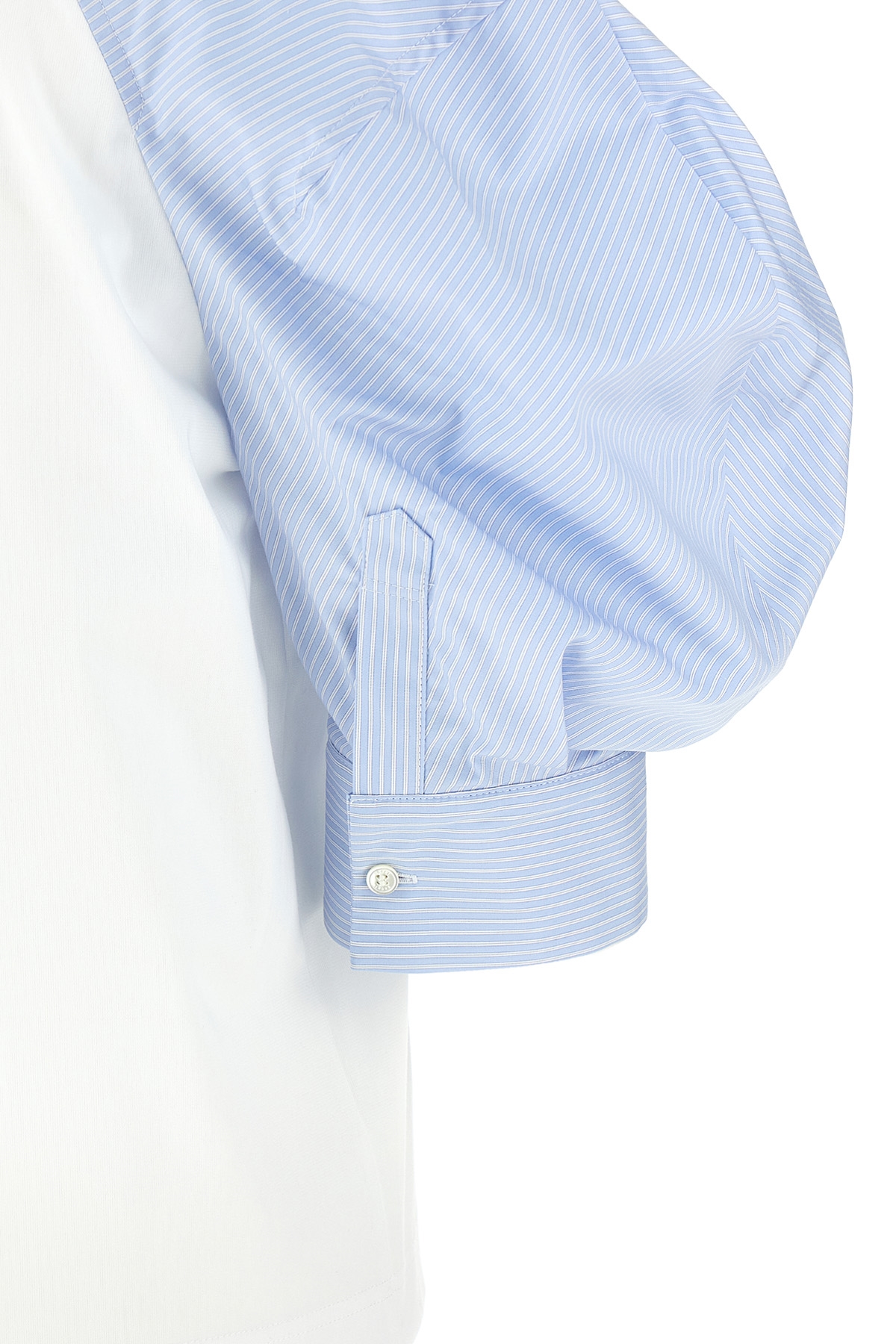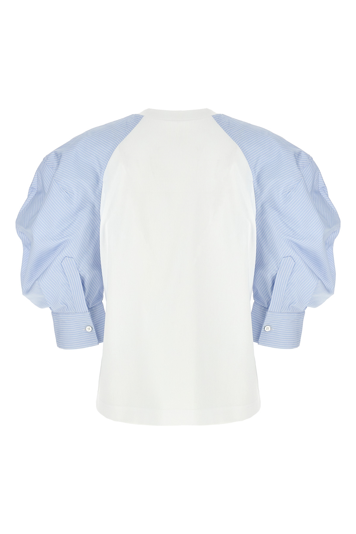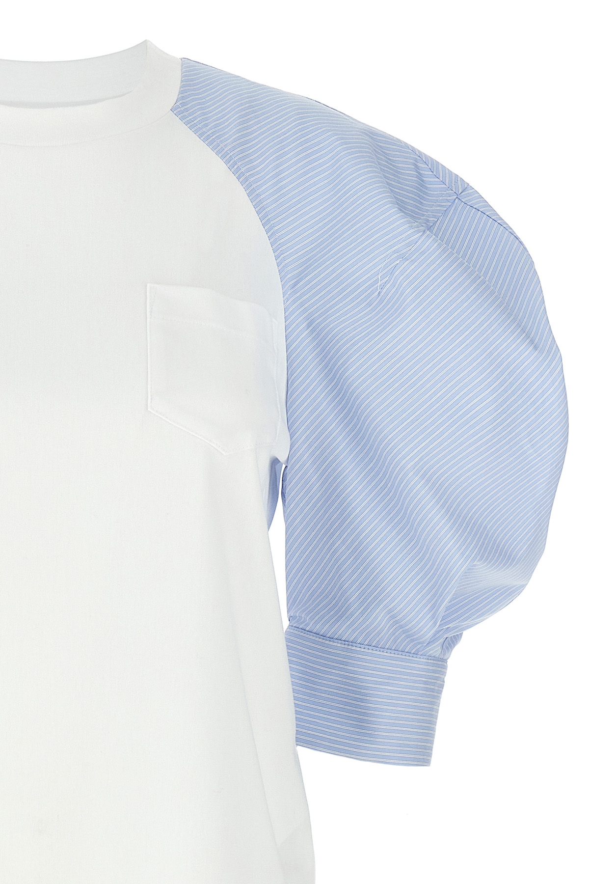 Cotton T-shirt, with crewneck, chest pocket, 3/4 sleeves in striped cotton poplin, balloon style with cuffs.