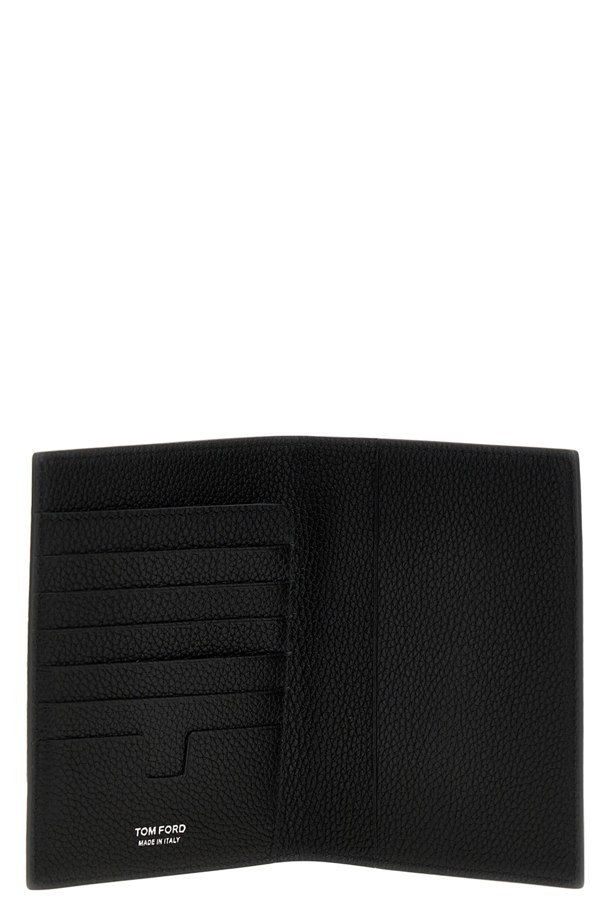 Passport holder in grainy leather with folding opening, and front embossed logo.